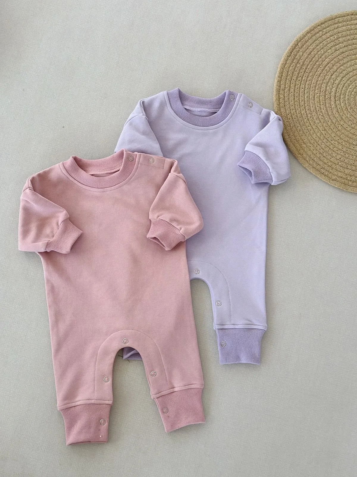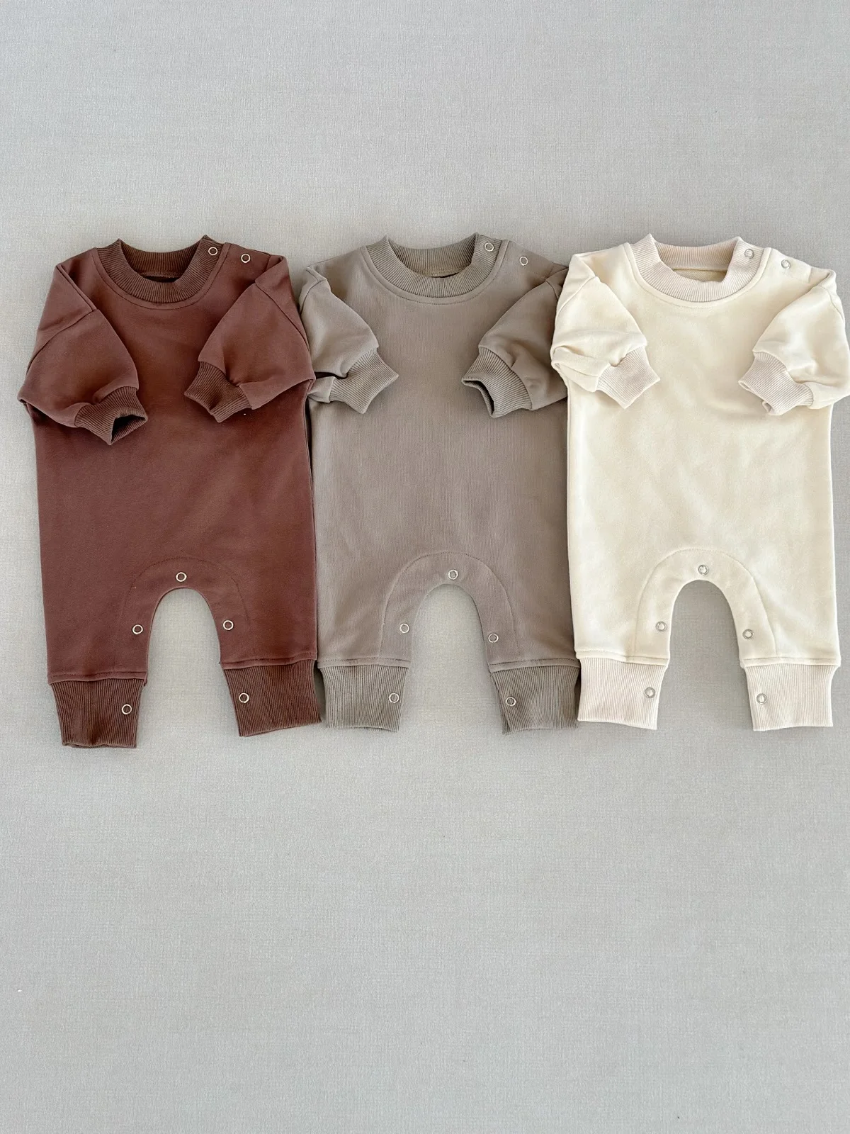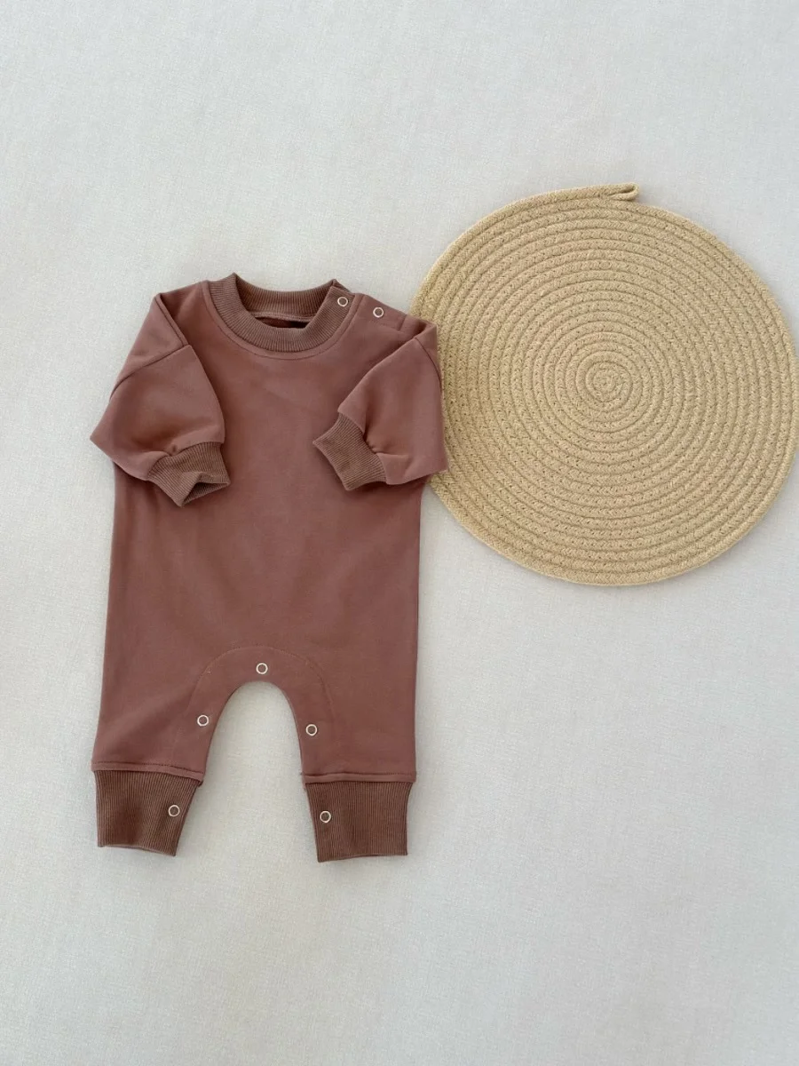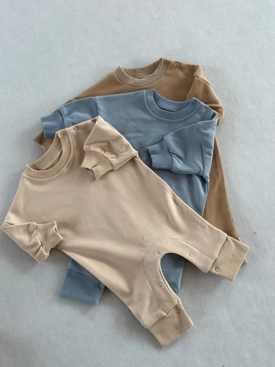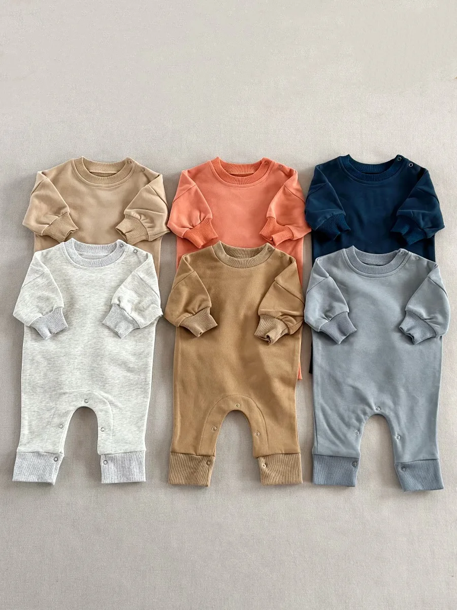 0-2T High Quality Autumn Baby French Terry Onesie Boys Girls Long Sleeve Shoulder Buttons Romper