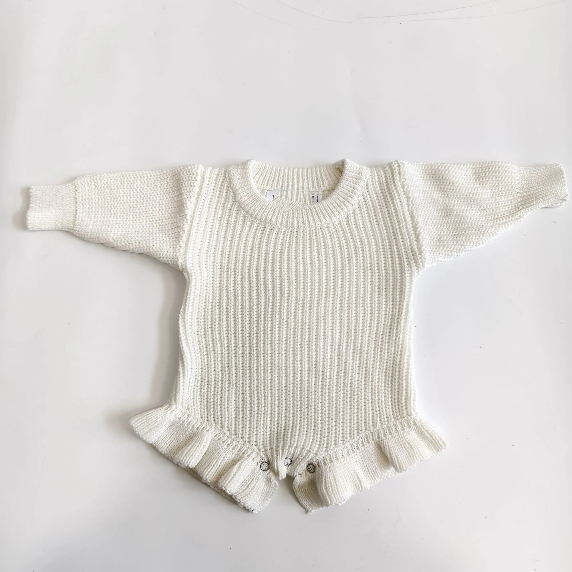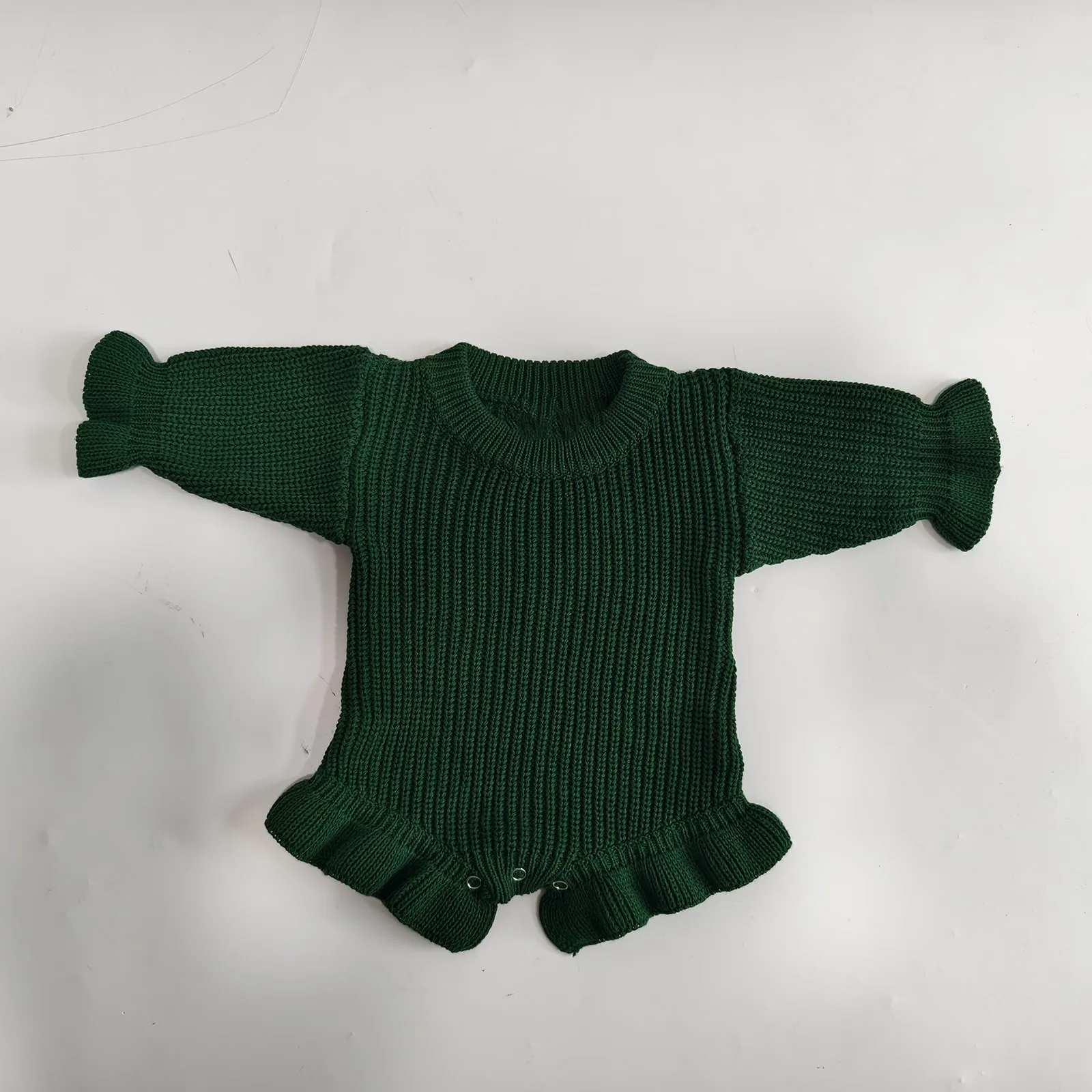 100% Cotton Custom Design Knitted Ruffle Romper for Baby Casual Style Button Closure Age 0-6 Months Newborn Gift