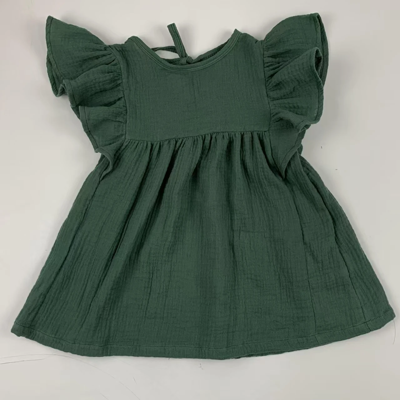 100% cotton summer toddler girl ruffle sleeve muslin solid color dress baby kids clothing