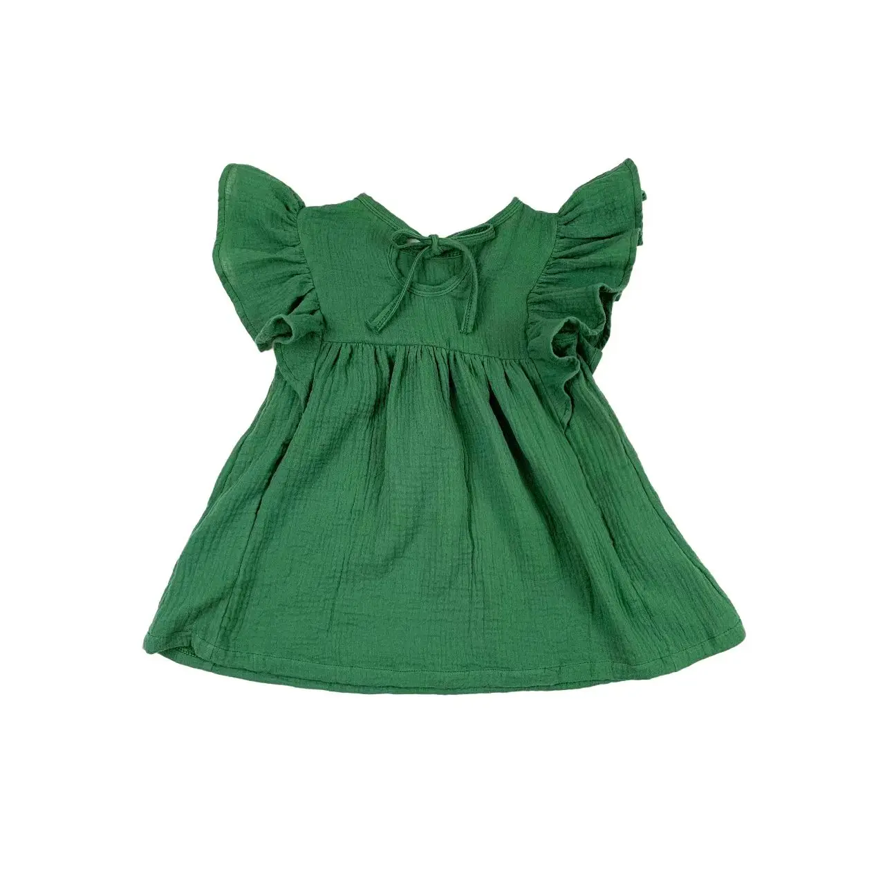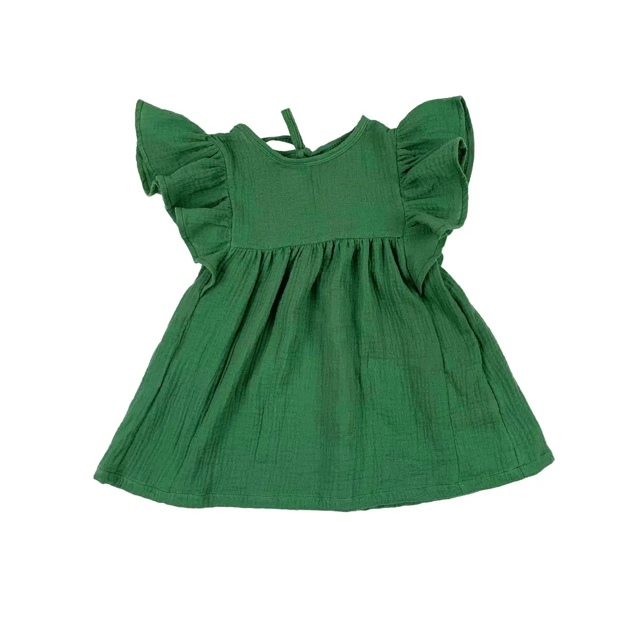 100% Cotton Summer Toddler Girl Ruffle Sleeve Muslin Solid Color Dress Baby Kids Clothing