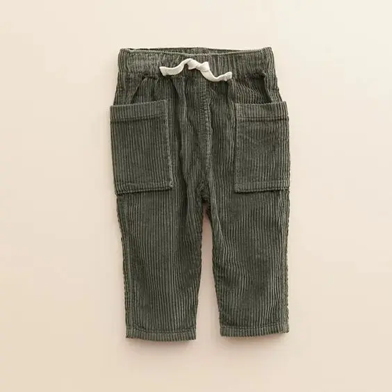 2024 Baby Toddler Corduroy Pockets Pants with Roll Cuffs Kids Unisex Trouser