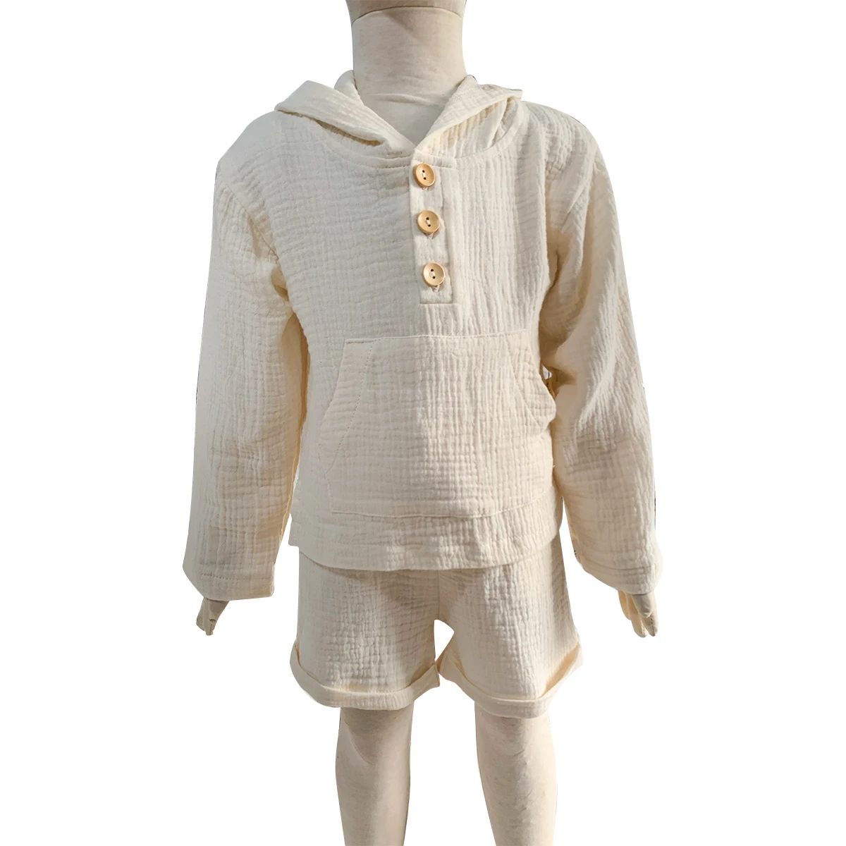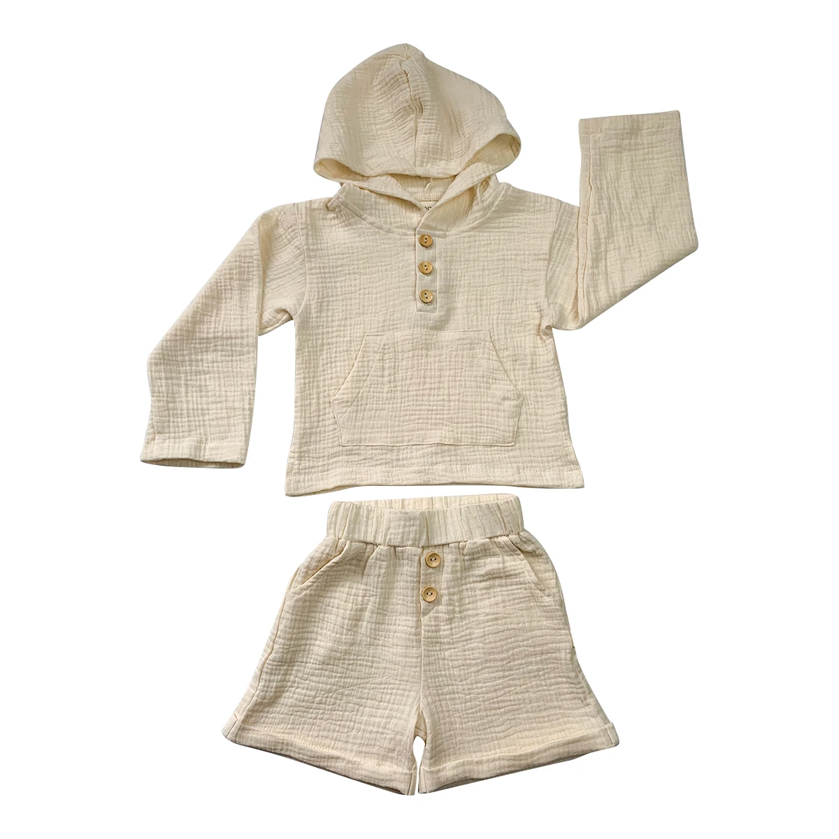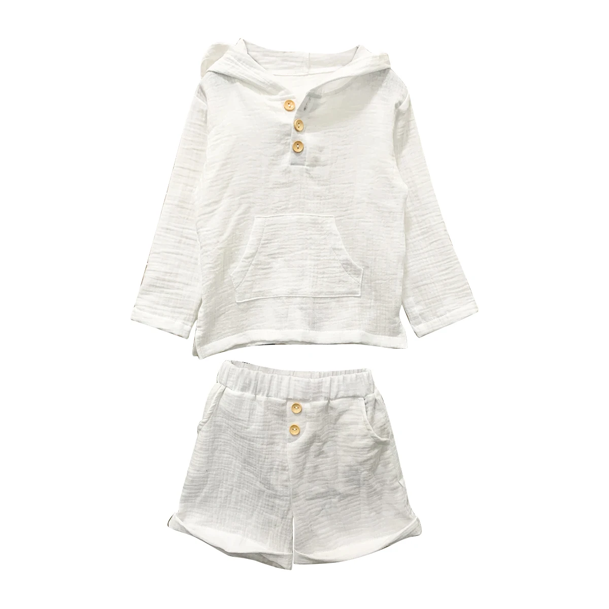 2024 Custom Baby Kids Linen Muslin Button Pocket Shirt and Short Set Baby Summer Suit