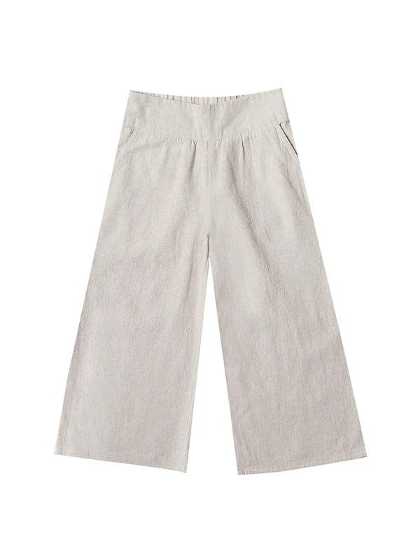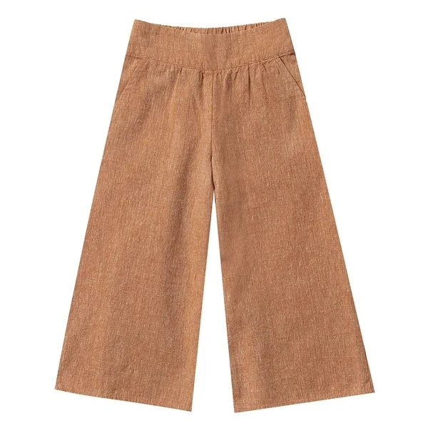 2024 Custom Spring Baby Loose Fit Pant with Pocket Girls Wide Leg Linen Pant
