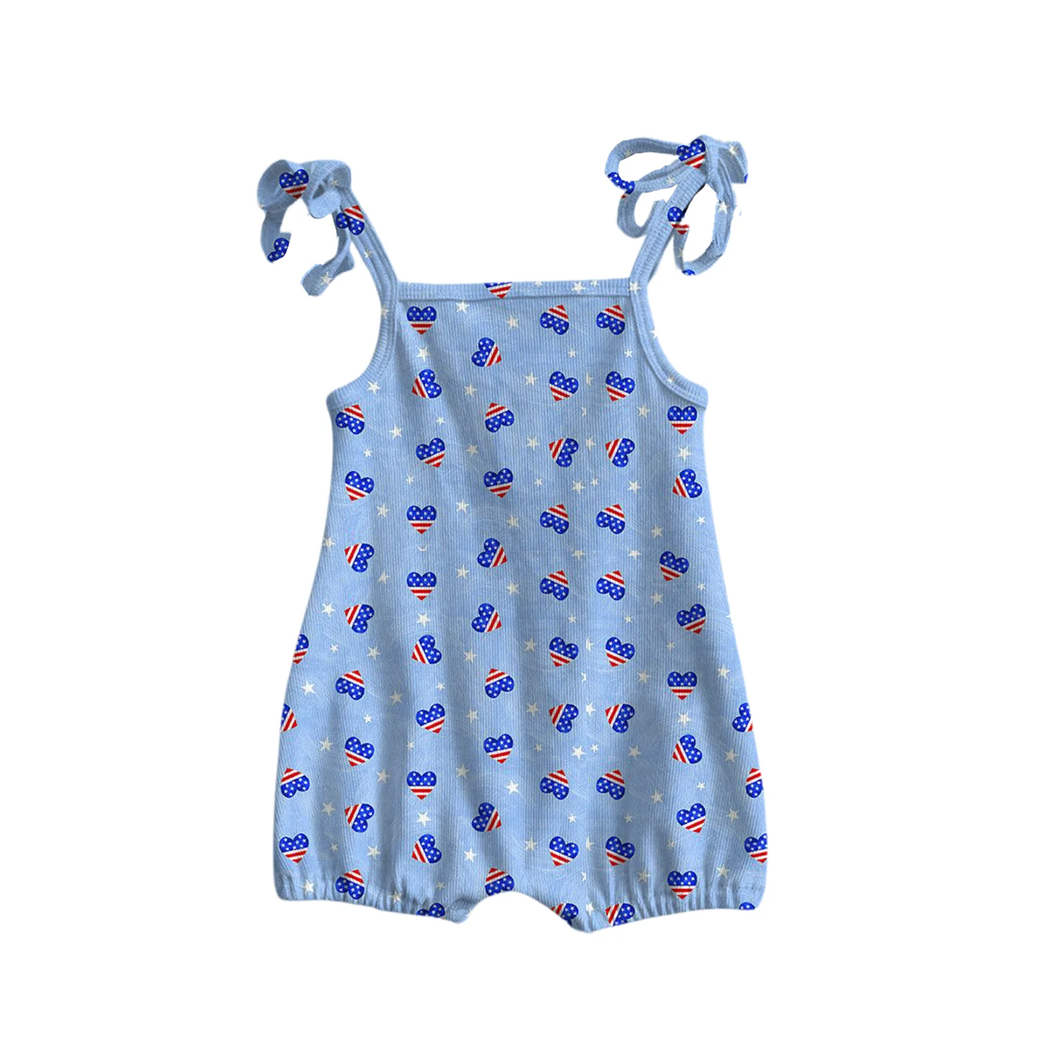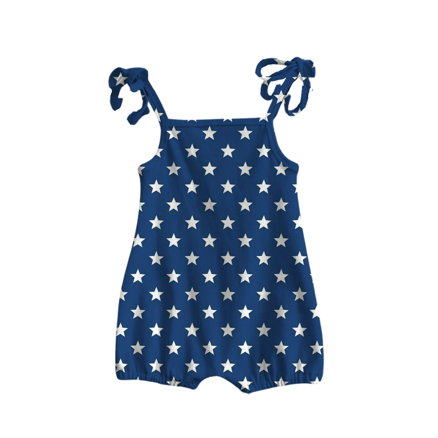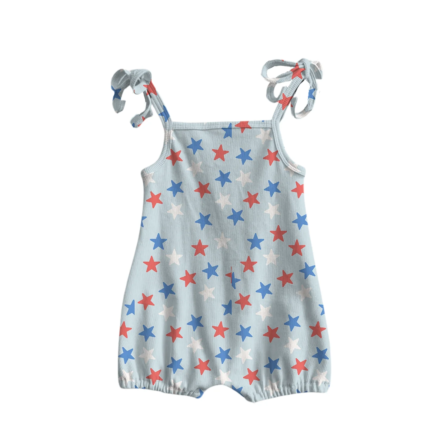 4 of July Independence Day Custom Star Pattern Girls Sleeveless Ribbing Cotton Cute Romper One-Pieces