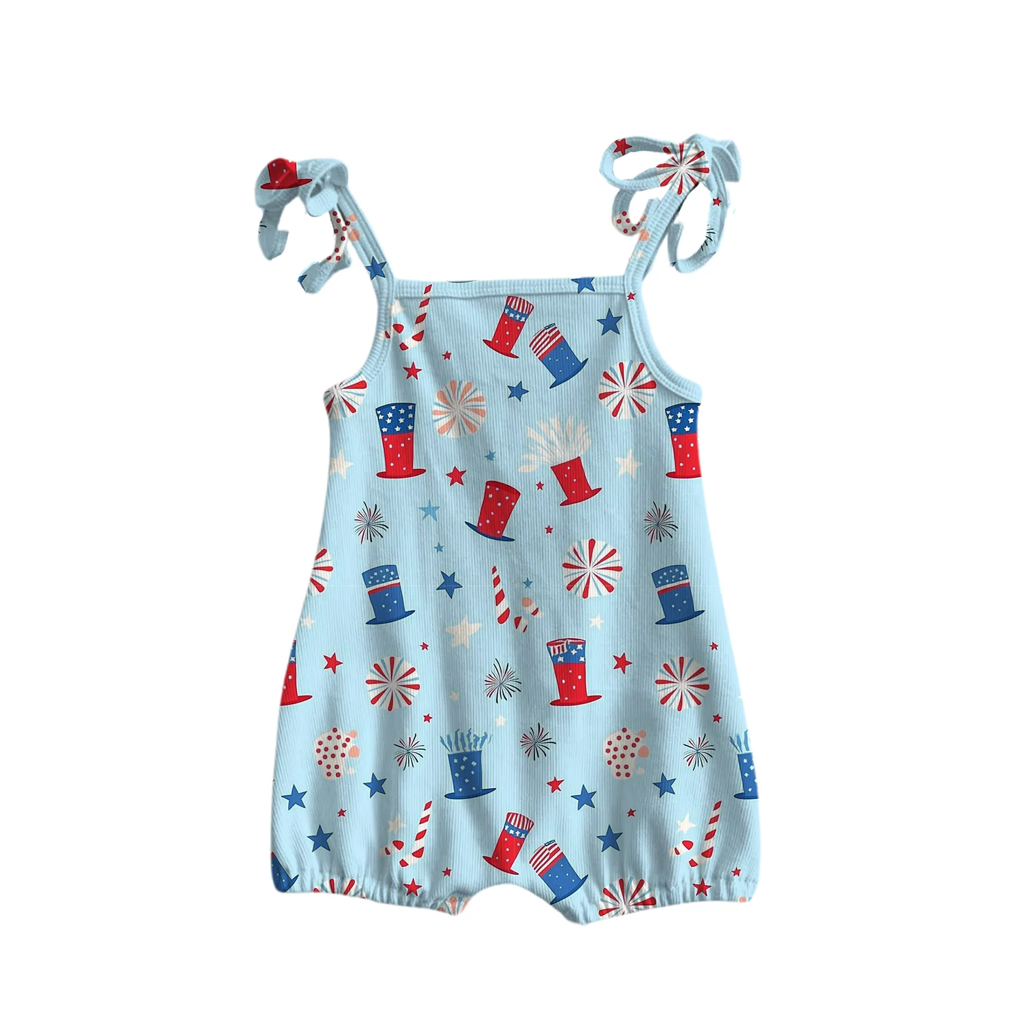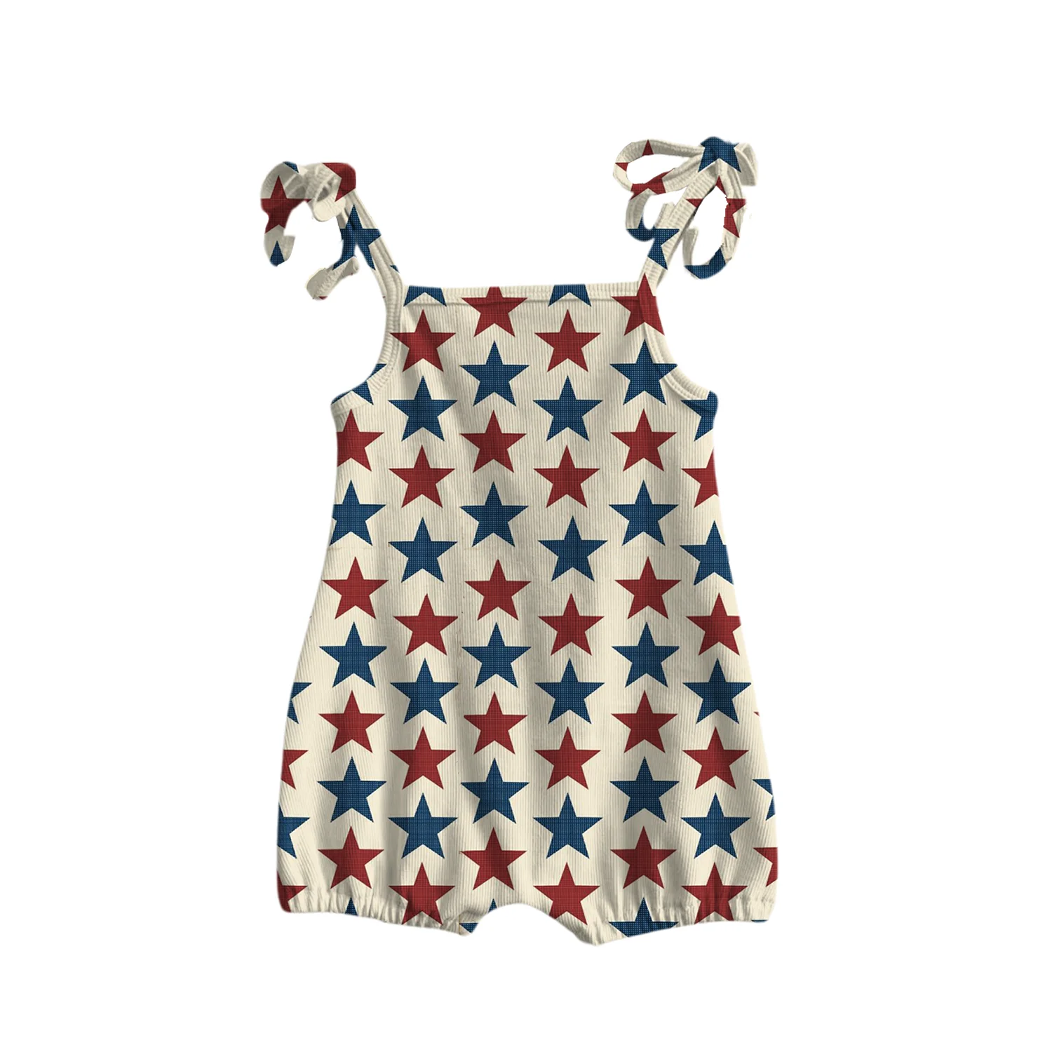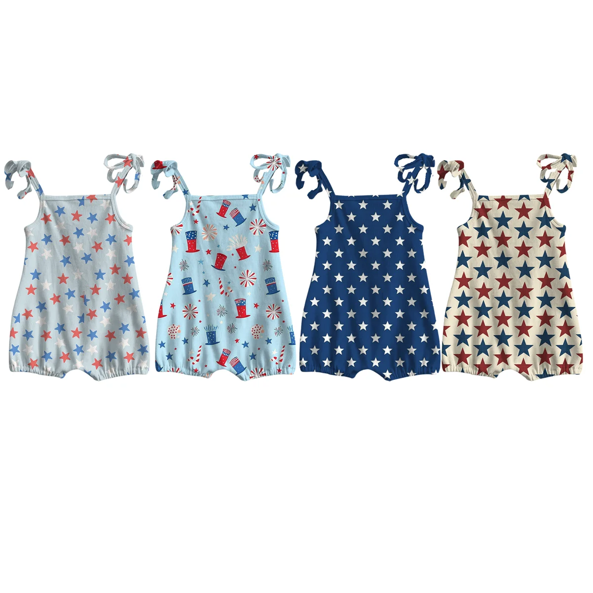 4 of July Independence Day Custom Star Pattern Girls Sleeveless Ribbing Cotton Cute Romper One-Pieces