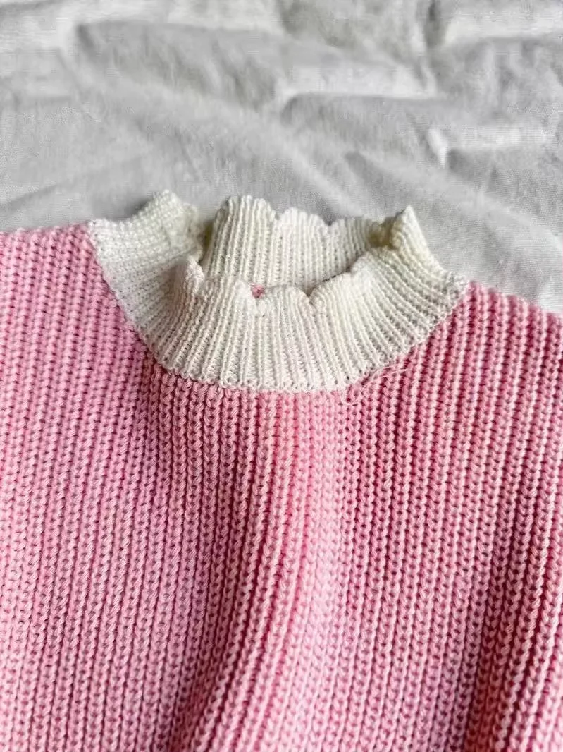 Be the first to review “Adorable Custom 100% Cotton Baby Sweater Floral Collar Hem Set Winter Long Sleeve Chunky Pullover Kids Knit Set”