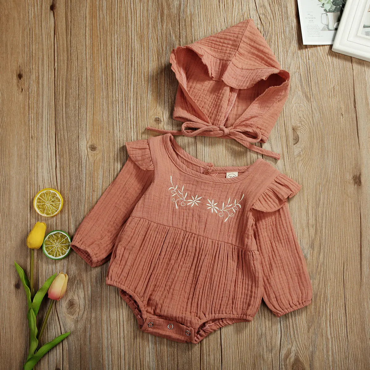 Be the first to review “Autumn Baby Clothing Newborn Baby Girl Cotton Linen Clothes Ruffle Romper Embroidered Jumpsuit Hat 2PCS Outfit Embroidery Patter”