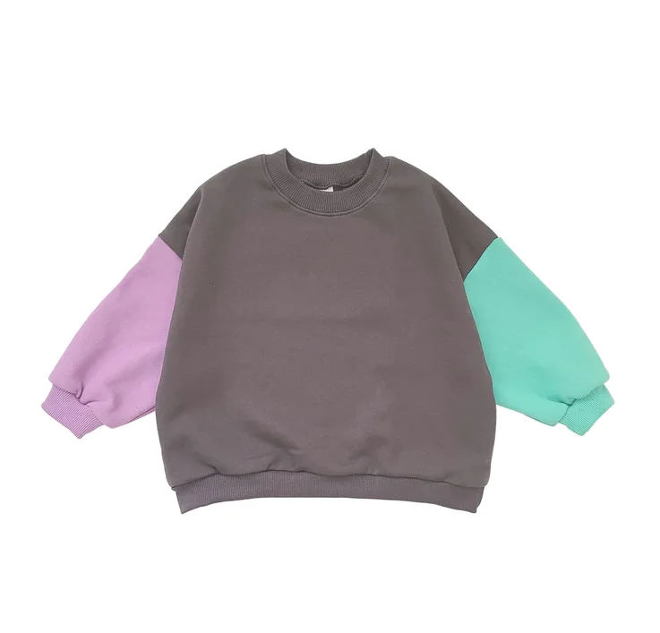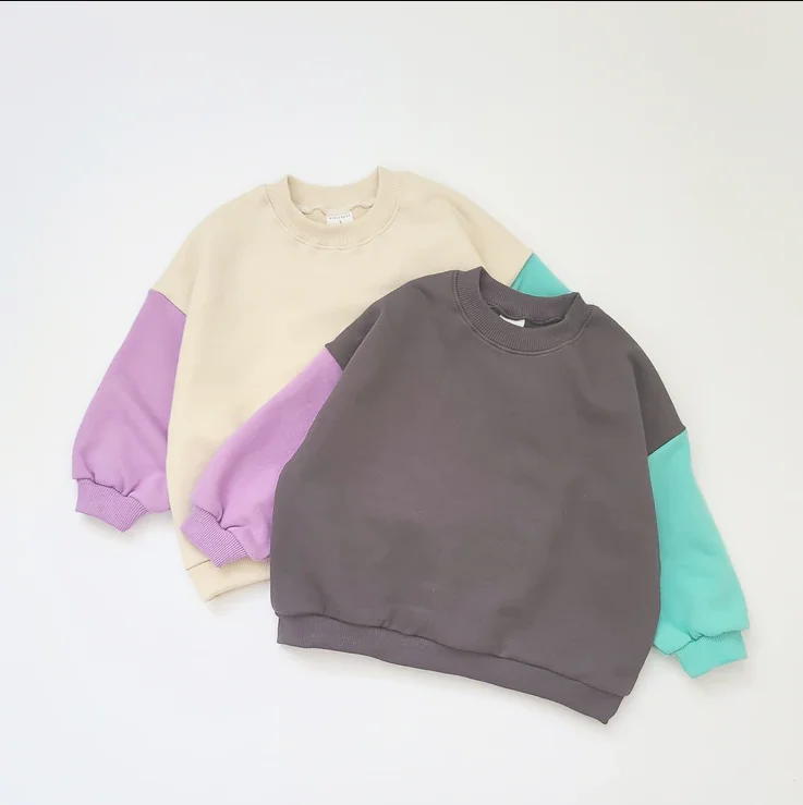 Autumn Custom Unisex Baby Color Block Sweatshirt Long-sleeved Kids Oversize Bubble Sweater