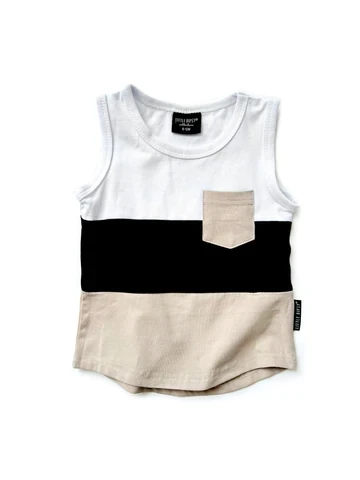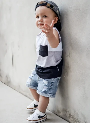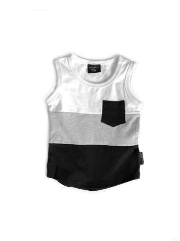 Block Color Summer Baby Boys Girls Shirt Children Swoop Bottom Hem Pocket Tanks