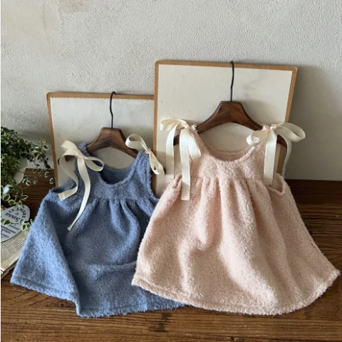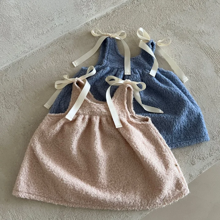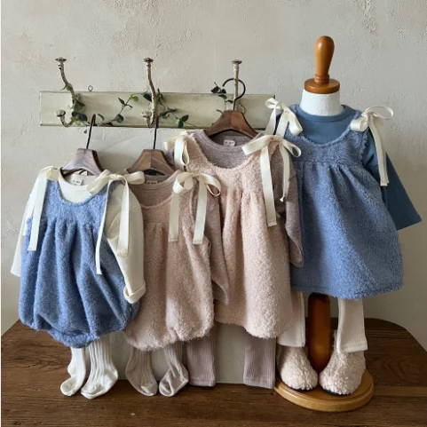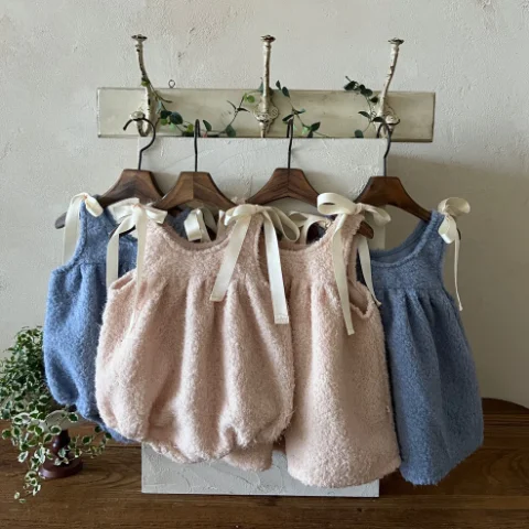 Boutique Unisex Sherpa Infant Baby Rompers Solid Design Bow Sleeveless Onesie with Snap Button Closure for Autumn and Winter