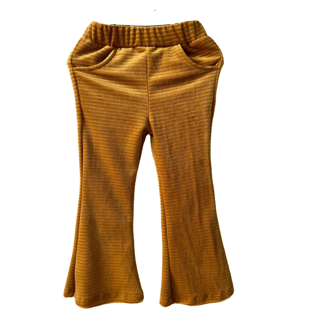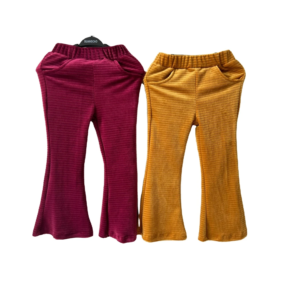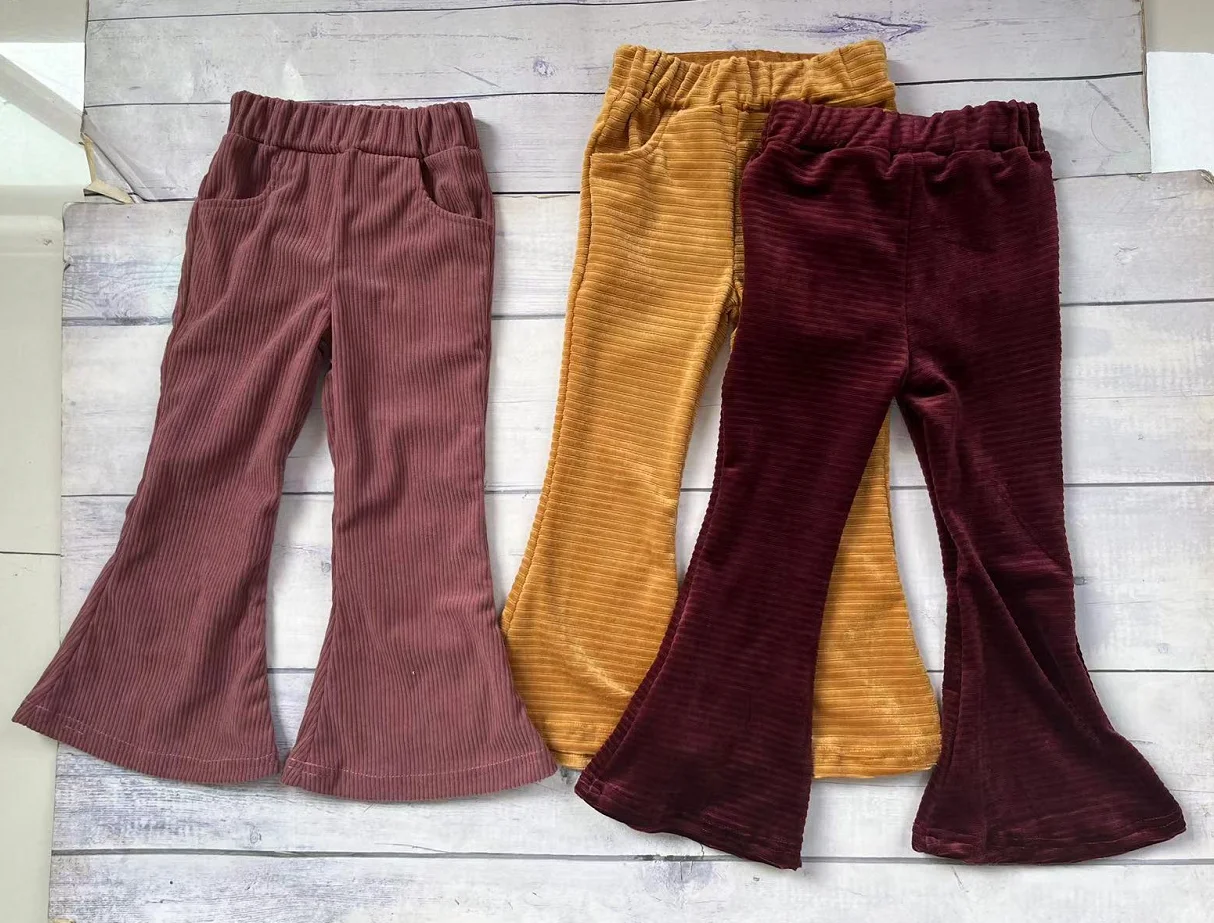 Casual Infant and Toddler Girl Corduroy Bell Bottomkids Trouser Stretchy Pocket Flare Pants