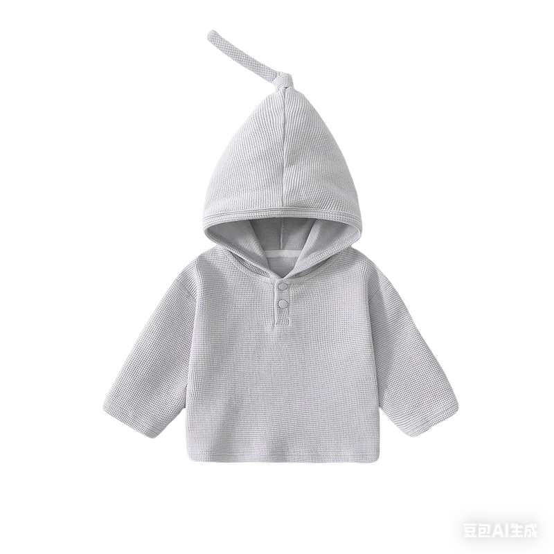 Children’s Hoodie Baby Pullover Spring and Autumn Baby Tops Kid’s Top Boys’ and Girls’ Cap T-shirt Solid Color Walf Checks Top