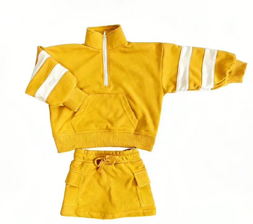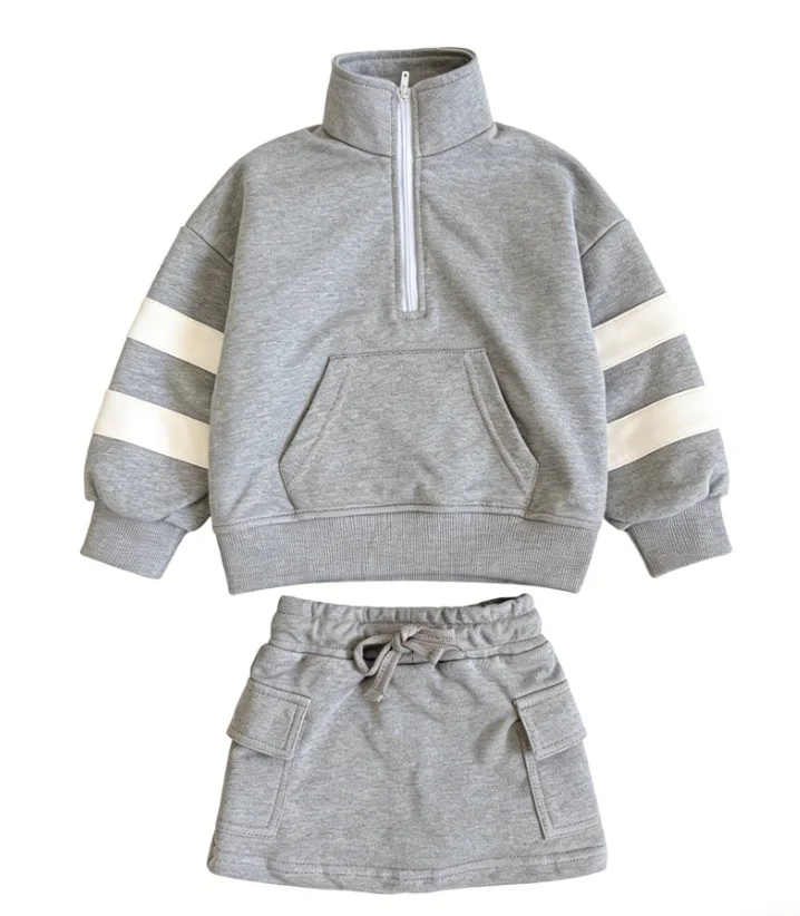 Comfortable Kids Clothes Set Girls’ Fleece Pullover Set Casual Spring Long Coat and Short Skirt Set Baby Clothing Set for 0-8T