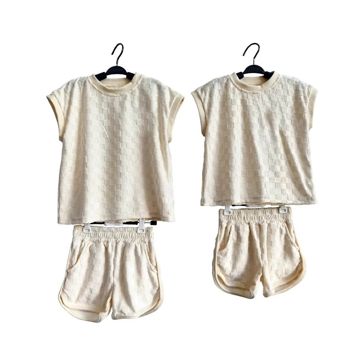 Cozy Soft 2-Piece Checkered Towel Cloth Sets Children’s Shorts Set Children’s Suit Shirt & Shorts Set for Baby Summer Clothing