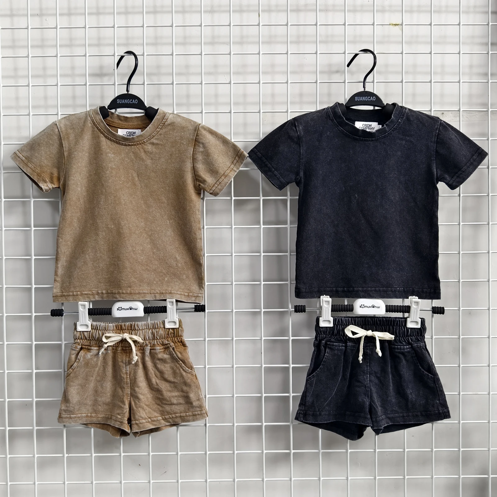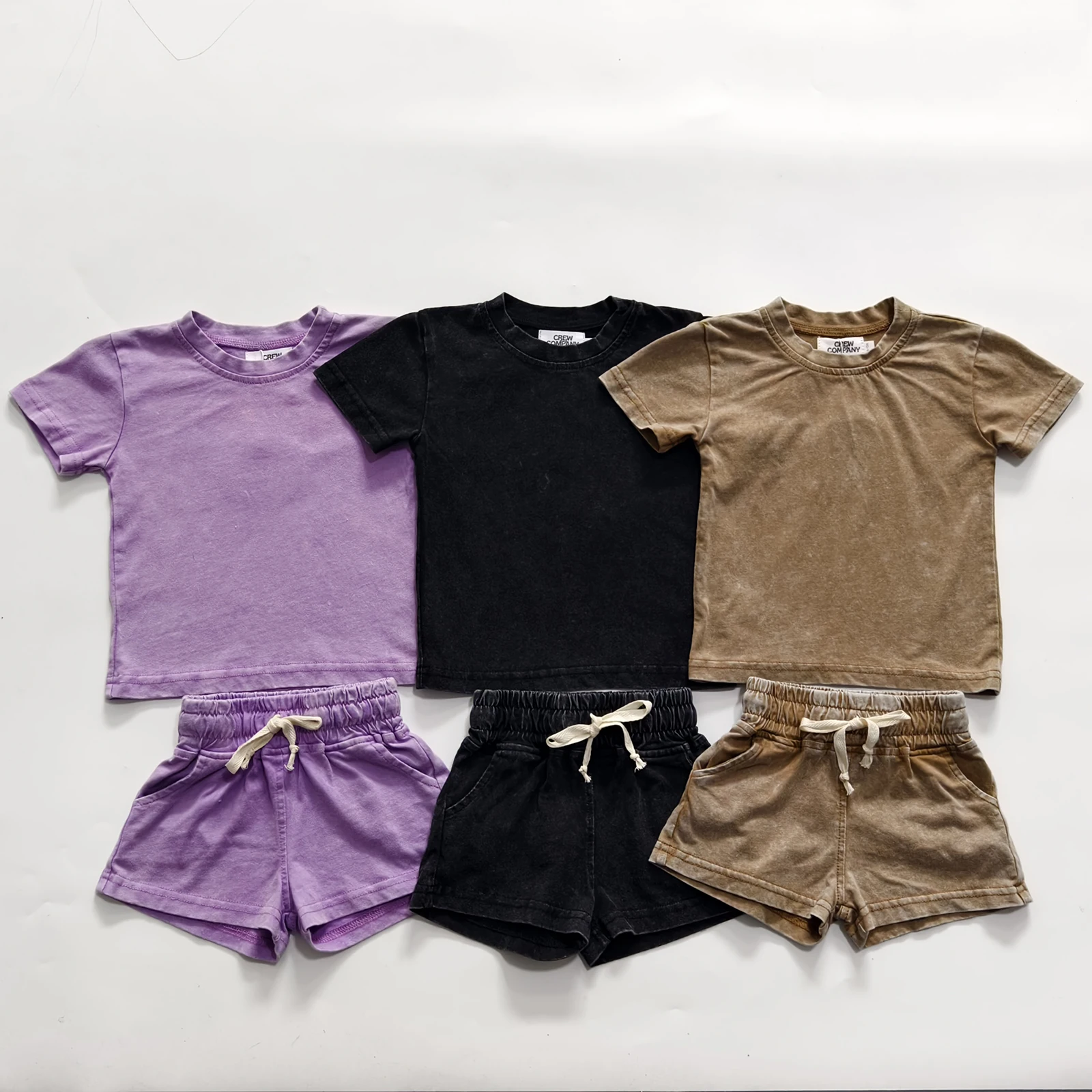 Custom Acid Wash Cool Boys Oversize Two Pieces Boxy T Shirts Cargo Shorts Toddler Summer Set
