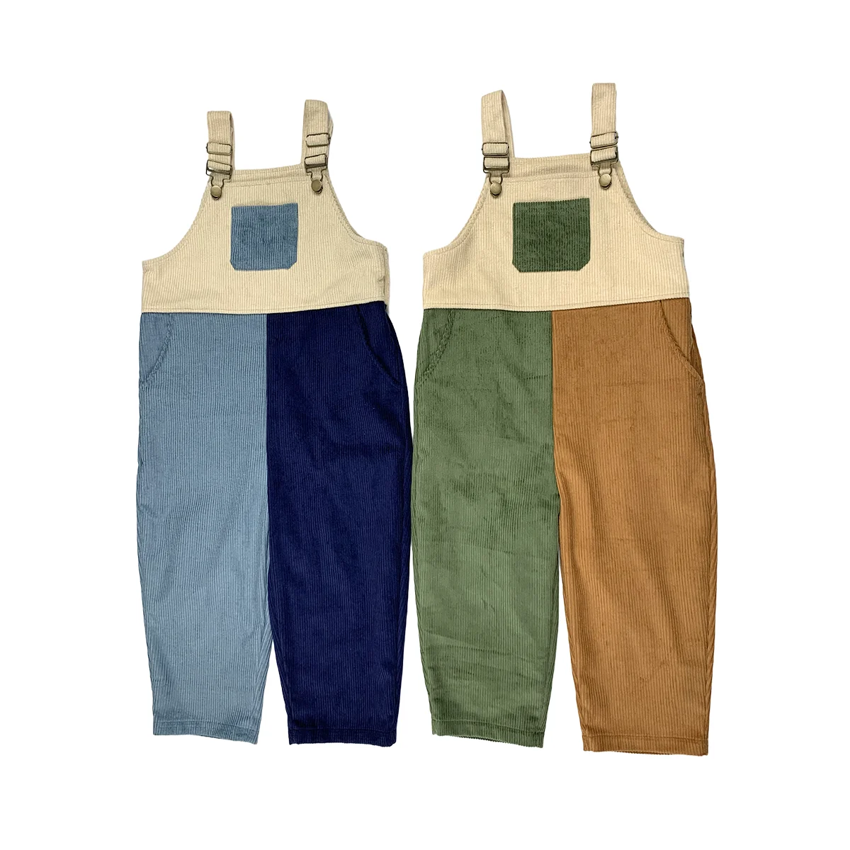Custom Baby Overalls Spring Corduroy Sleeveless Romper Kids Color Block Oversize Dungarees Toddler Overalls