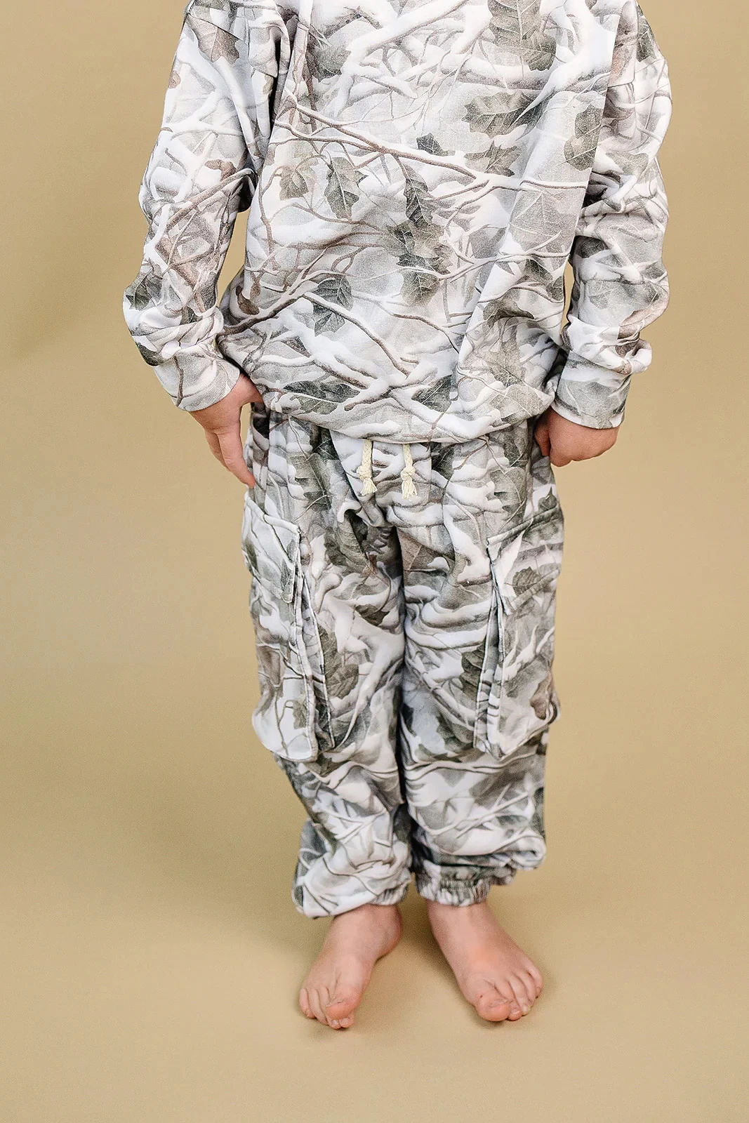 Custom Camo Pattern Toddler Kids Unisex French Terry Two-piece Cargo Sweatshirt Jogger Set Baby Clothing