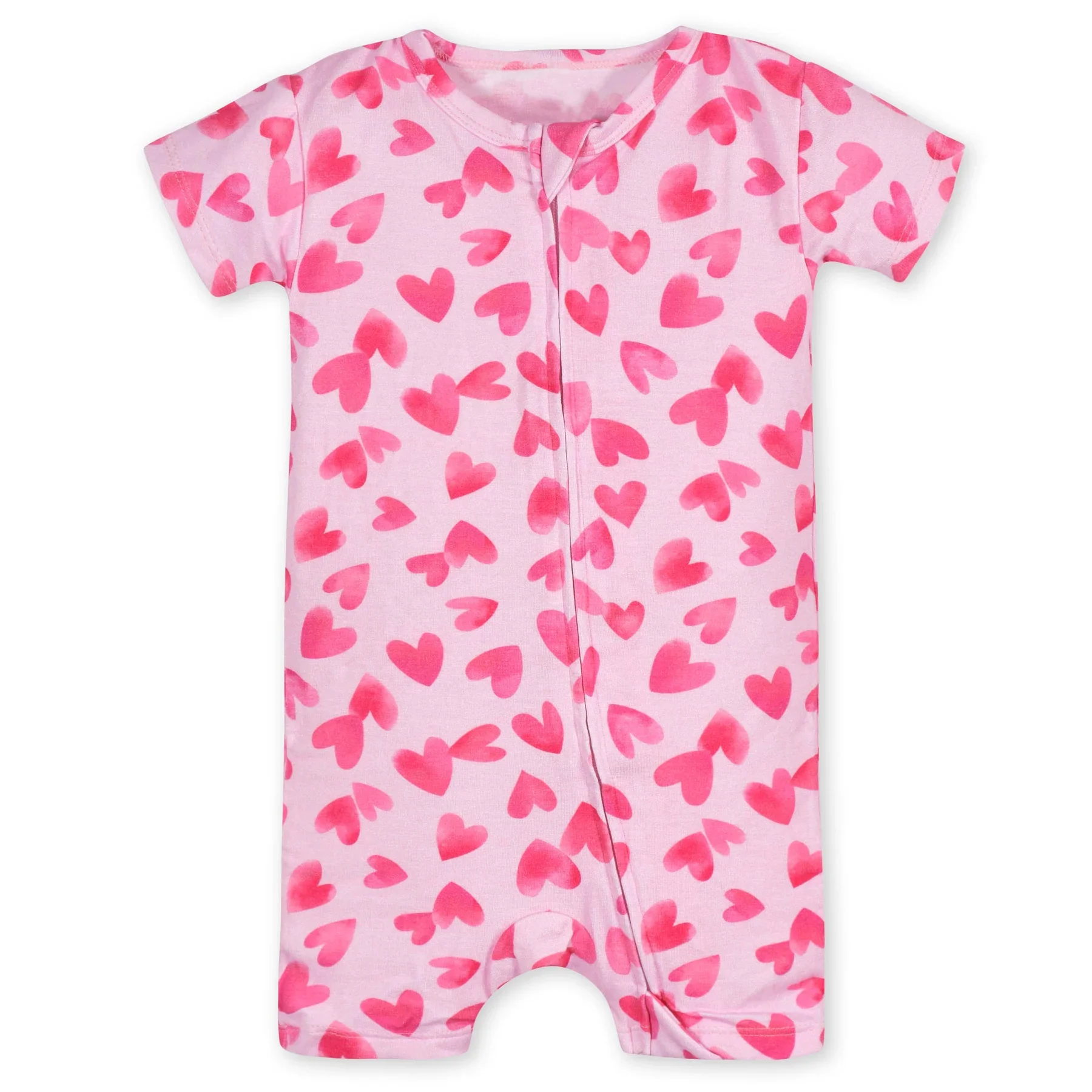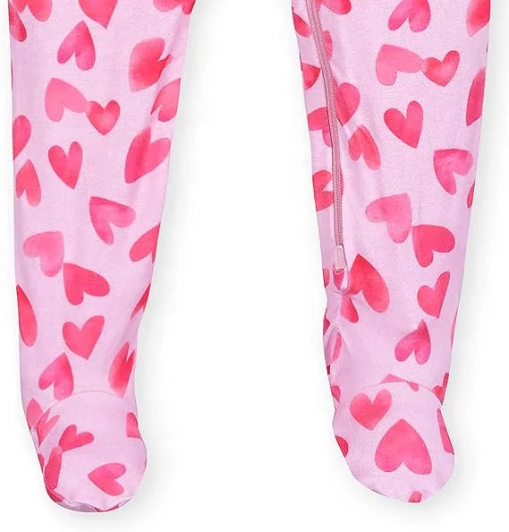 Custom Heart Print Romper Valentin Day Baby Girl Footed Pajamas