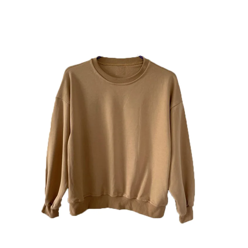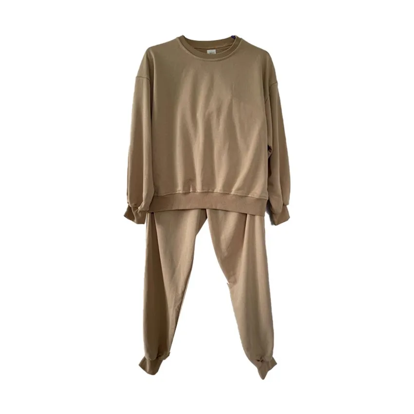 Custom Knitted Cotton O-Neck Solid Mustard Mommy and Me Long Sleeve Sweatshirt Suit Mother and Daughter or Son Clothes Sets