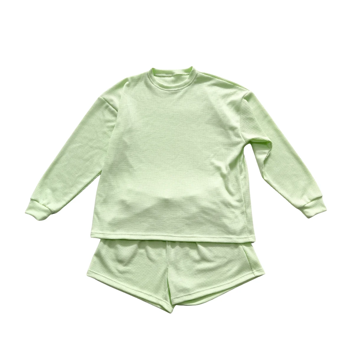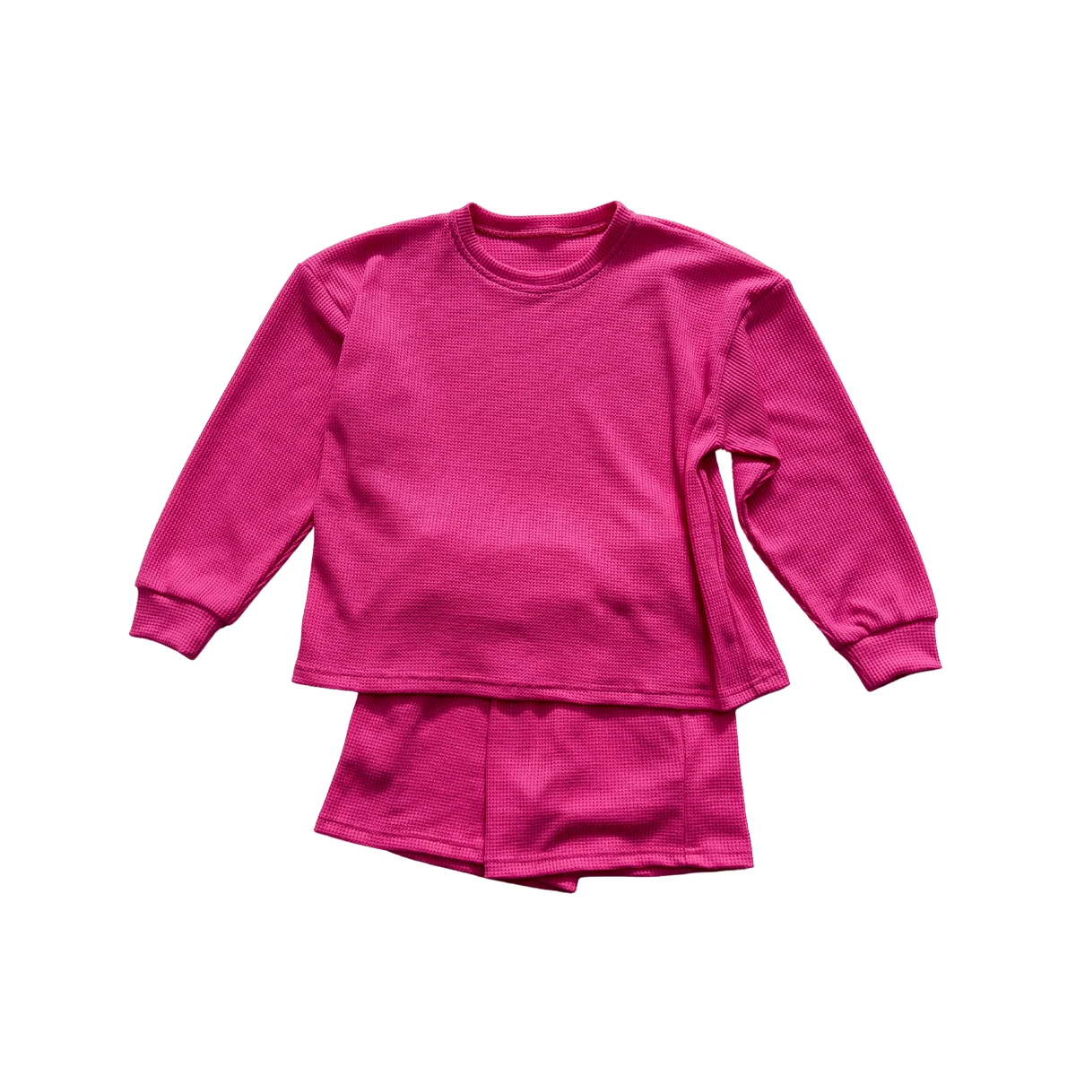 Custom Printed Kids Baby Girls Clothing Sets Crop Length Long Sleeve Oversized Tops & Shorts 2-Piece Waffle Outfits