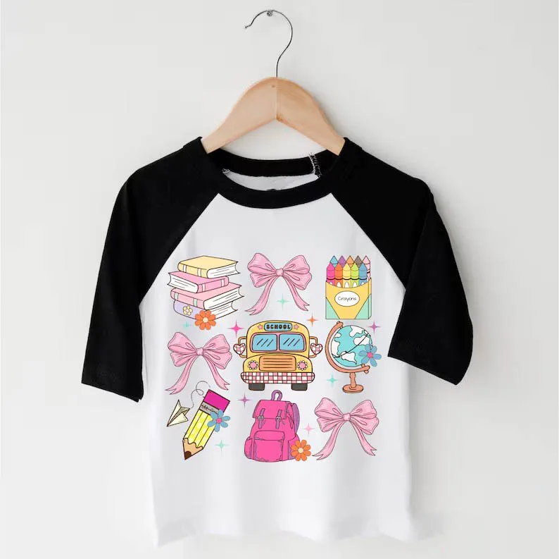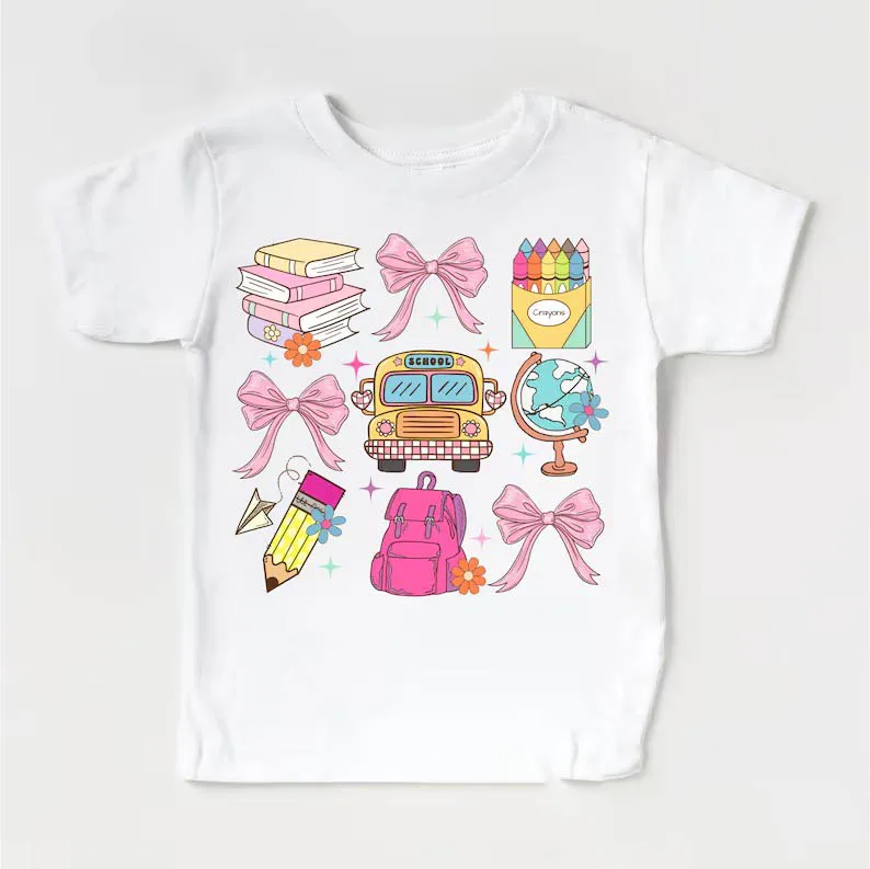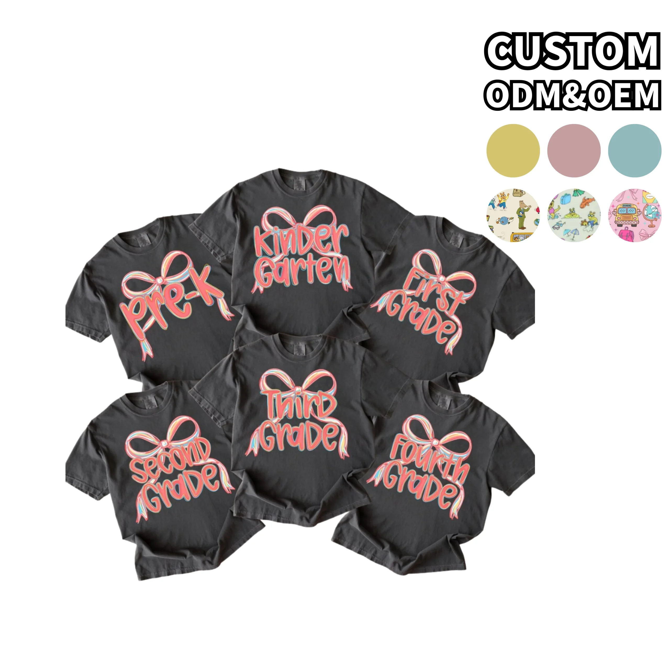 Custom Solid Bamboo Short Sleeve T-shirt Back to School Casual Custom Printed Pattern for Baby Girls