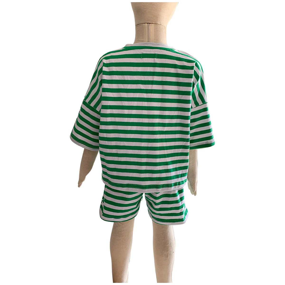 Custom Summer Infant Baby Stripe Knit Cotton Short Sleeve Shirt Match Drawstring Shorts Casual Tracksuits Kids Clothes Set