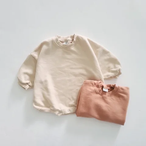 Custom Toddler Baby Sweatshirt Romper Long Sleeve Baby Romper Solid Color Loose Bodysuit Sweatshirt Fat Loose Casual Romper