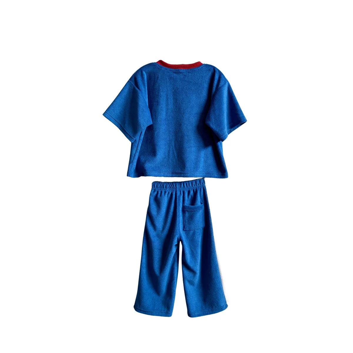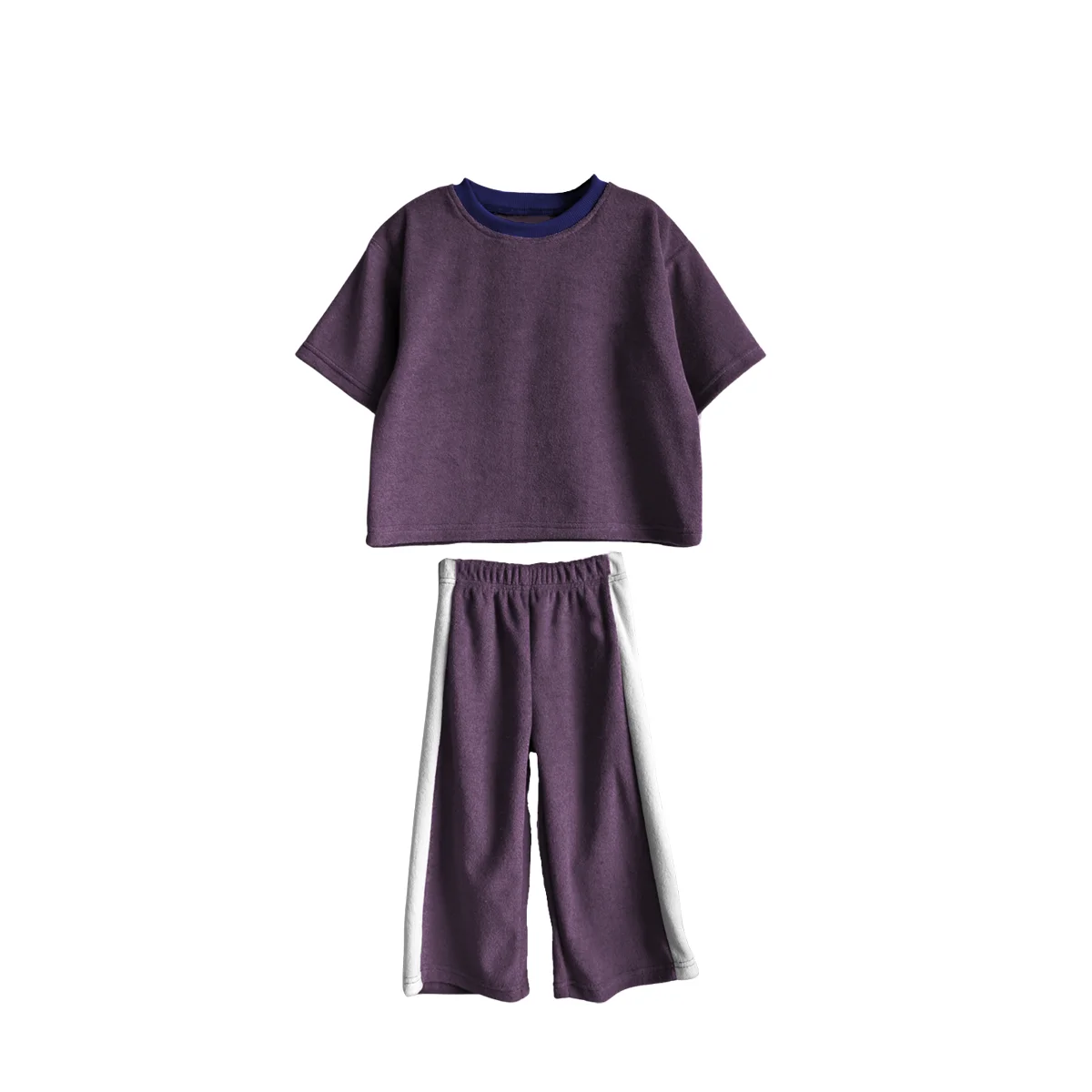 Custom Toddler Girls Baby Solid Color Towel Fabric Set Long Sleeve and Pants Children’s 2 Pcs Summer Outfit
