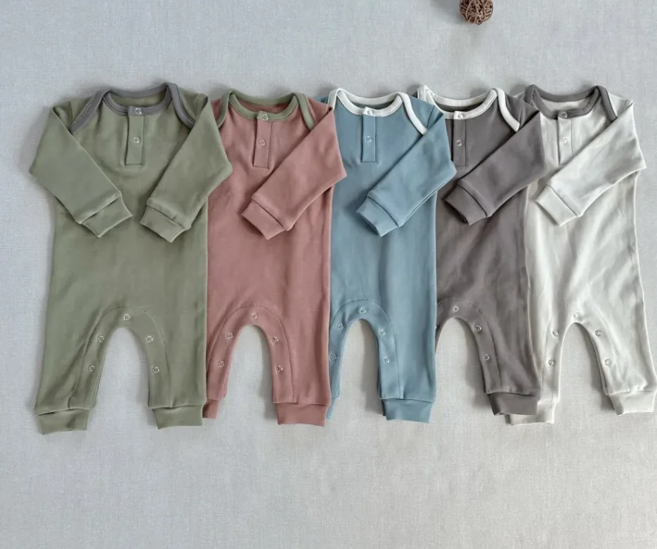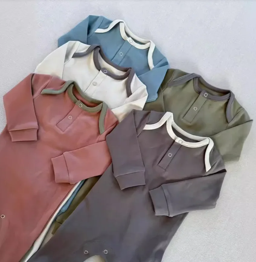 Custom Toddler Unisex Spring Long Sleeve Sweatshirt Romper Neutral French Terry Solid Color Romper