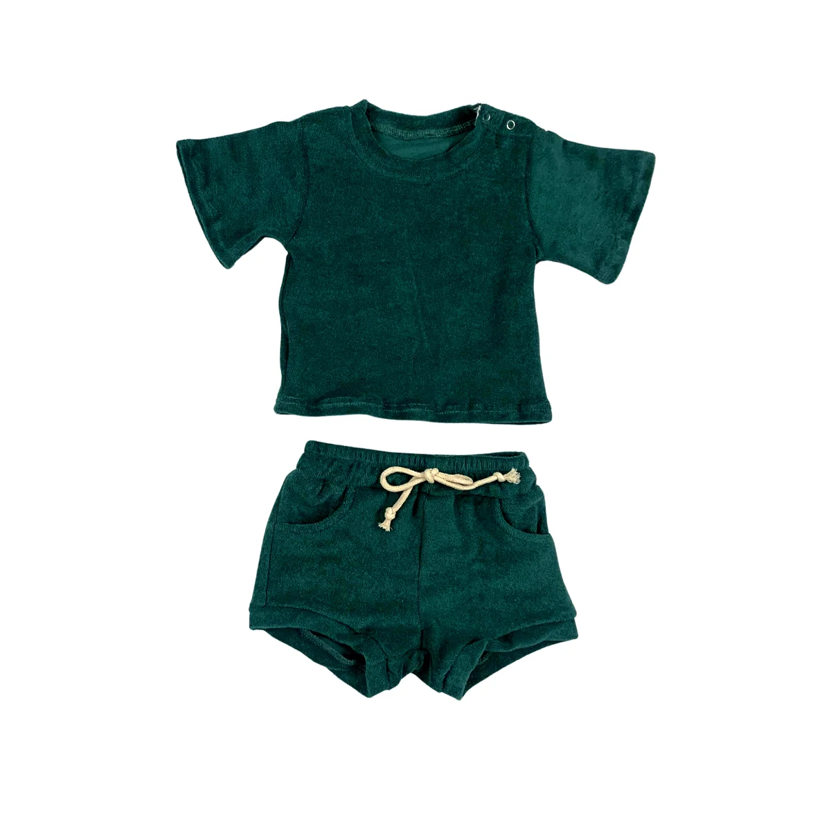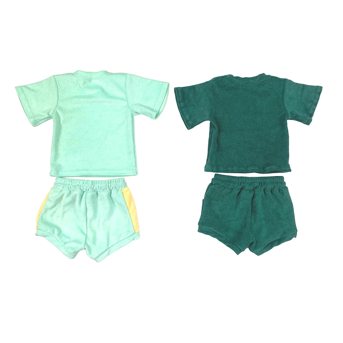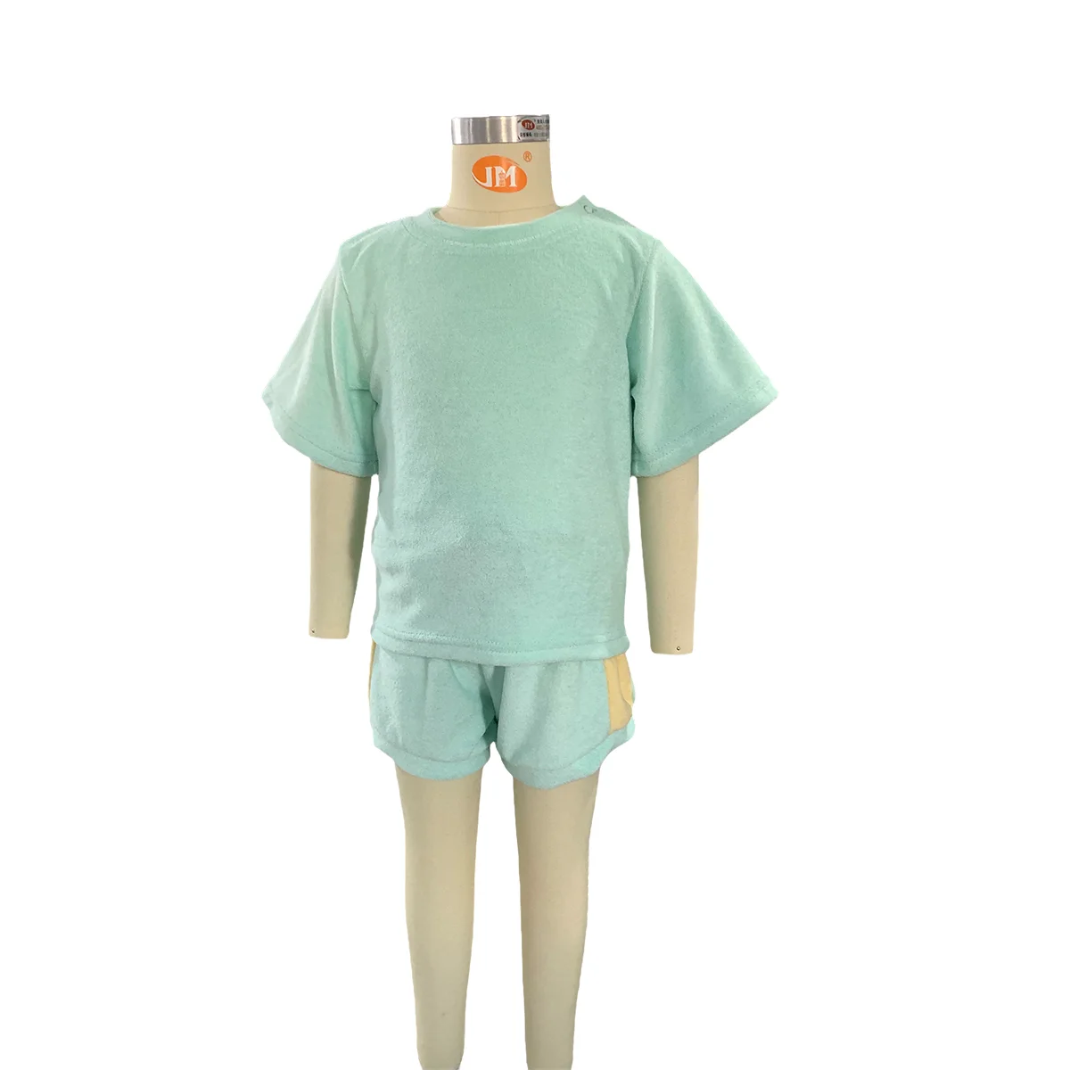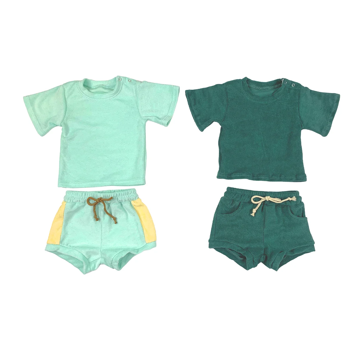 Custom Toweling Cotton Baby T-Shirt Shorts Outfits Casual Summer Short Sleeve Top and Shorts Clothing Sets