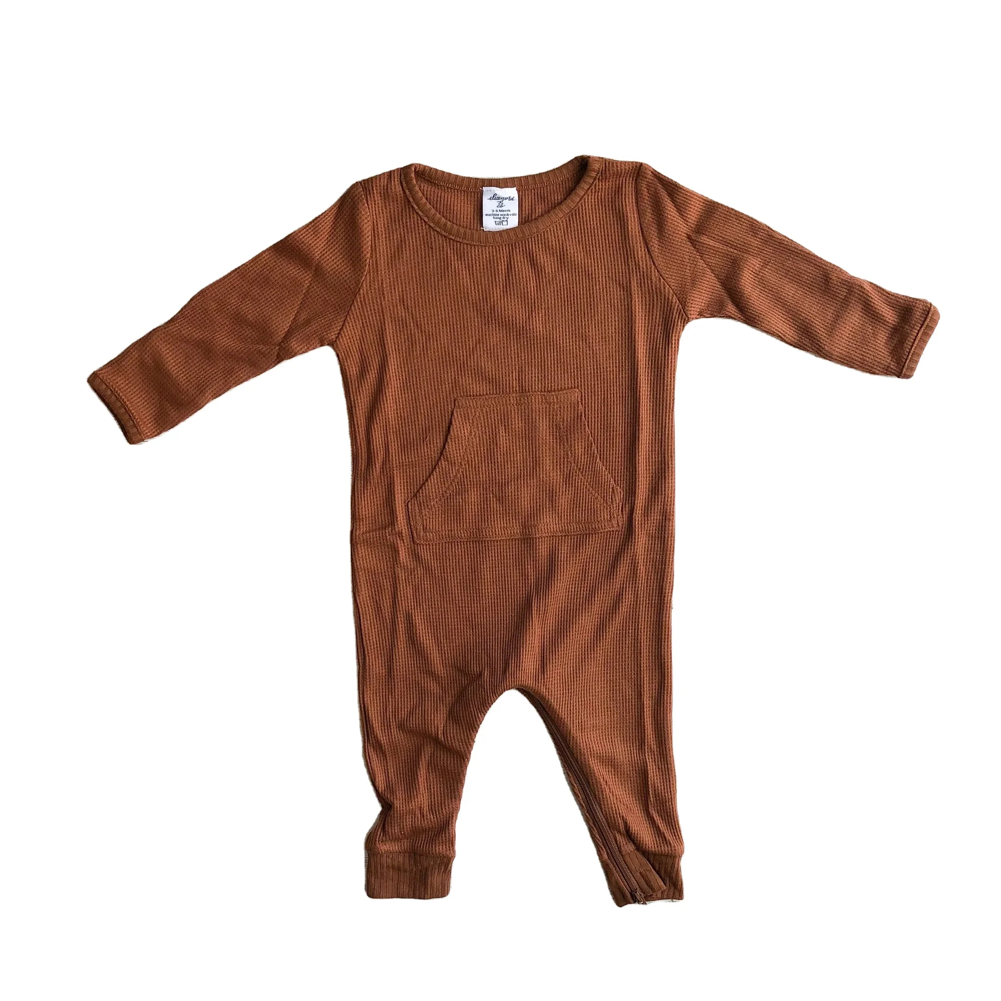 Custom Waffle Unisex Autumn Baby Jumpsuit Long Sleeve Zipper Crotch Design Infant Colorful Baby Romper