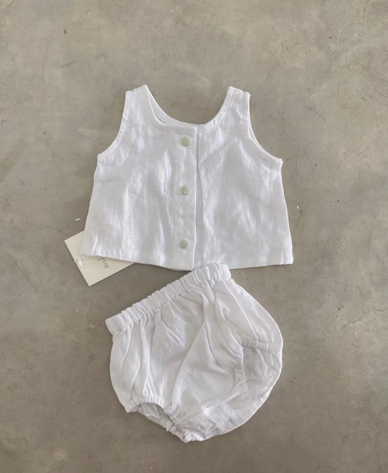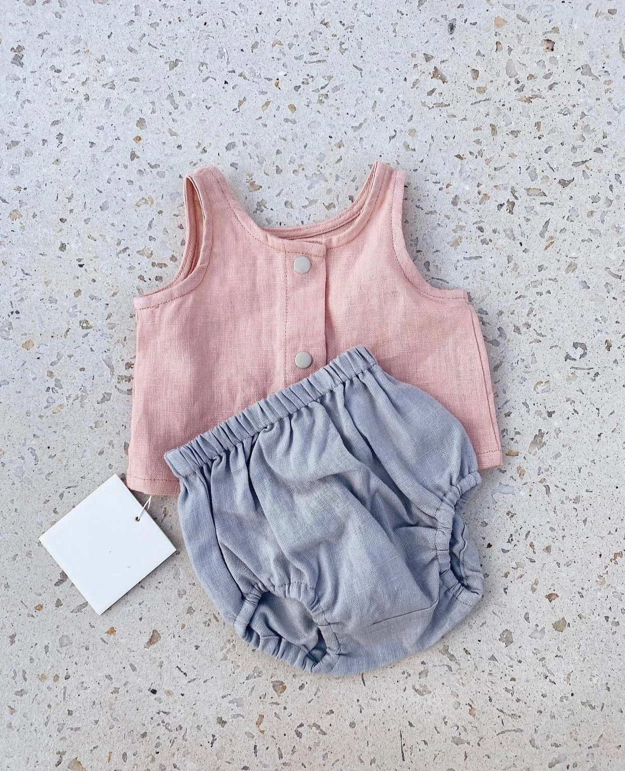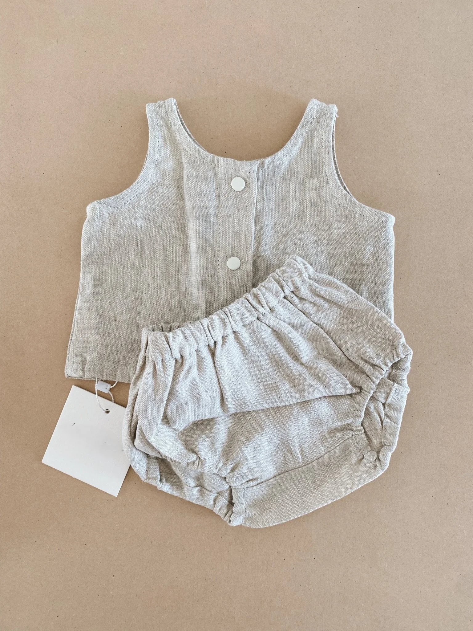 Cute Unisex Baby Toddler Cotton Linen Sleeveless Top and Bloomer 2 Pieces Button Set Baby Summer Clothes