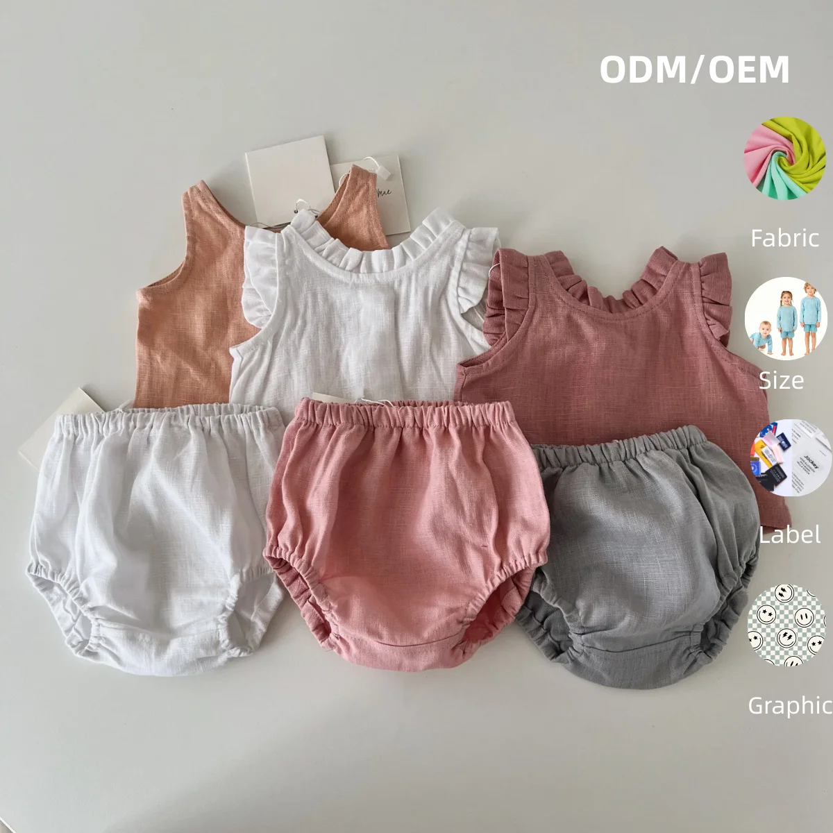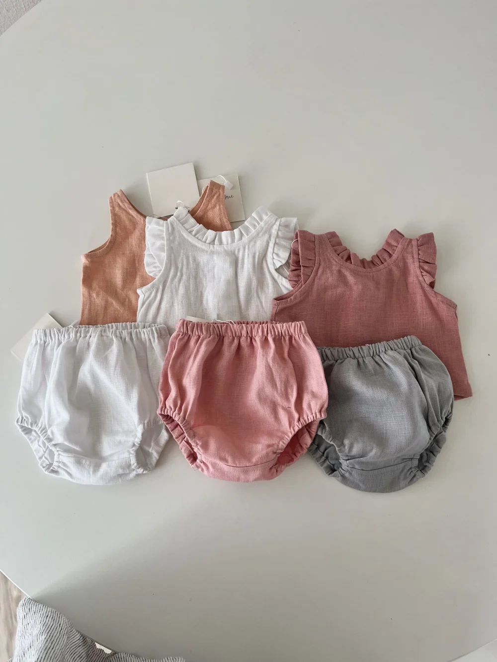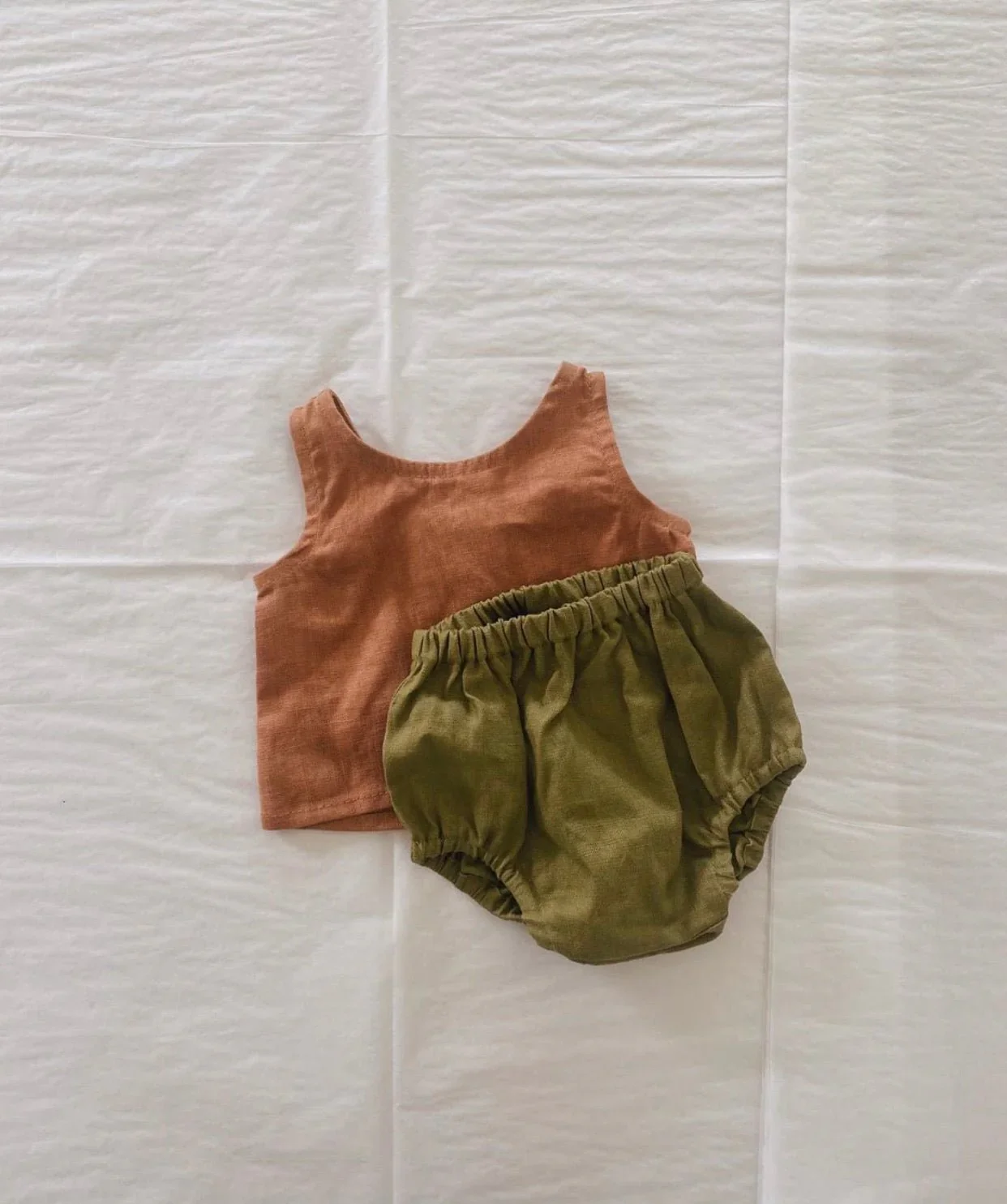 Cute Unisex Baby Toddler Cotton Linen Sleeveless Top and Bloomer 2 Pieces Button Set Baby Summer Clothes