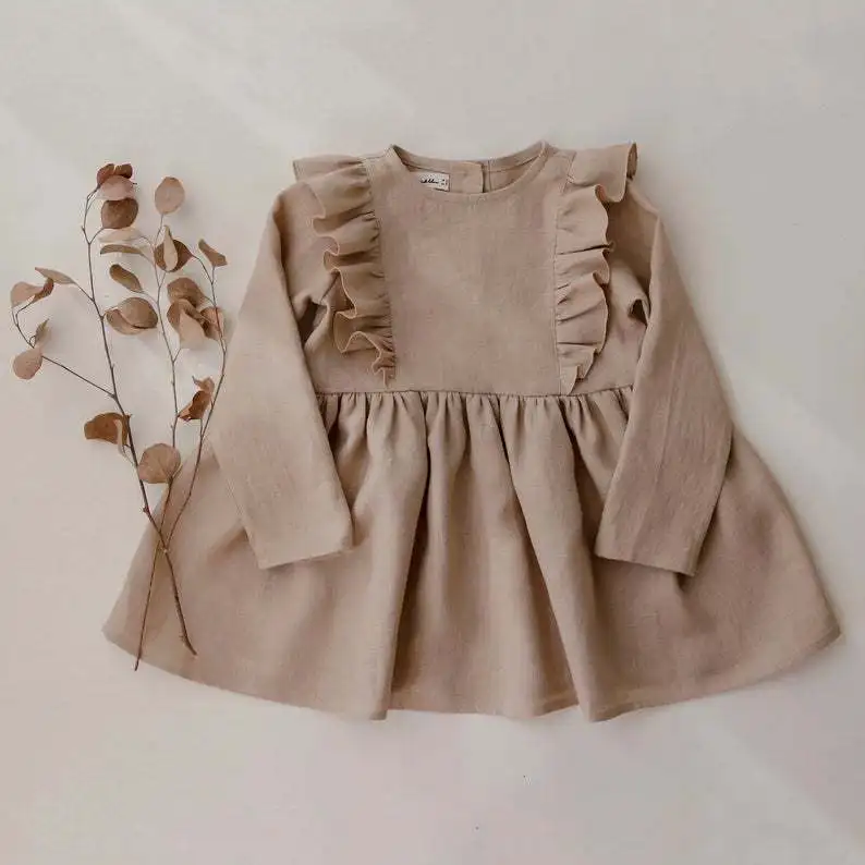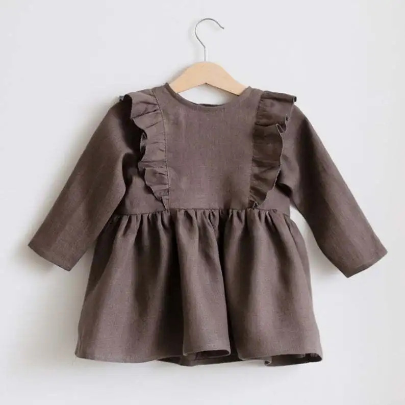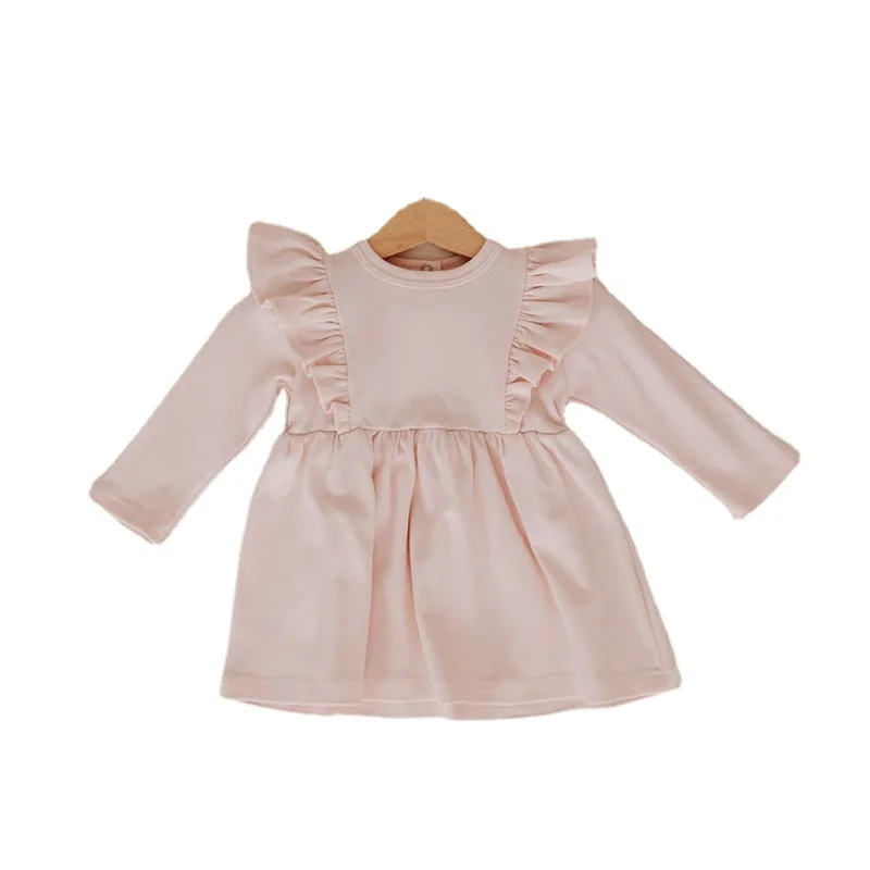 Factory Custom Baby Clothes Cotton Spandex Baby Sweet Dress Long Sleeves Pleated Bow Baby Girl Dress