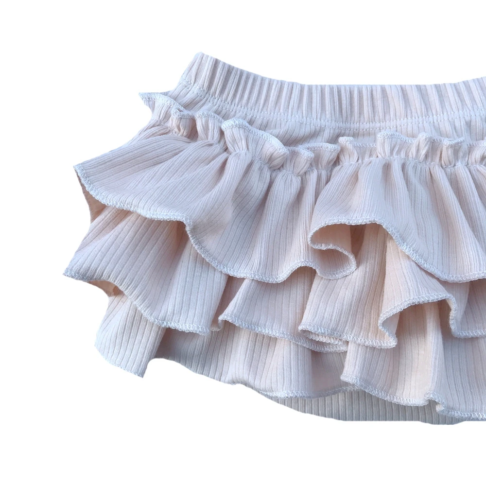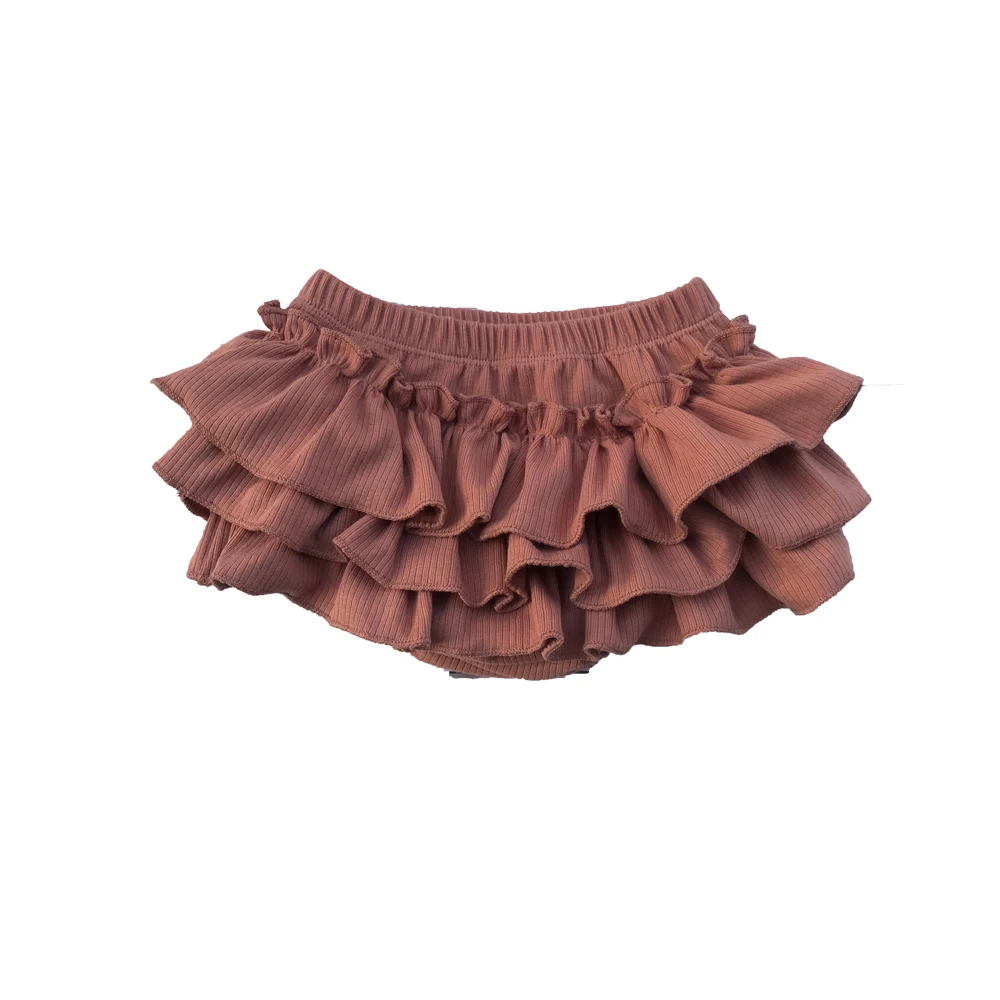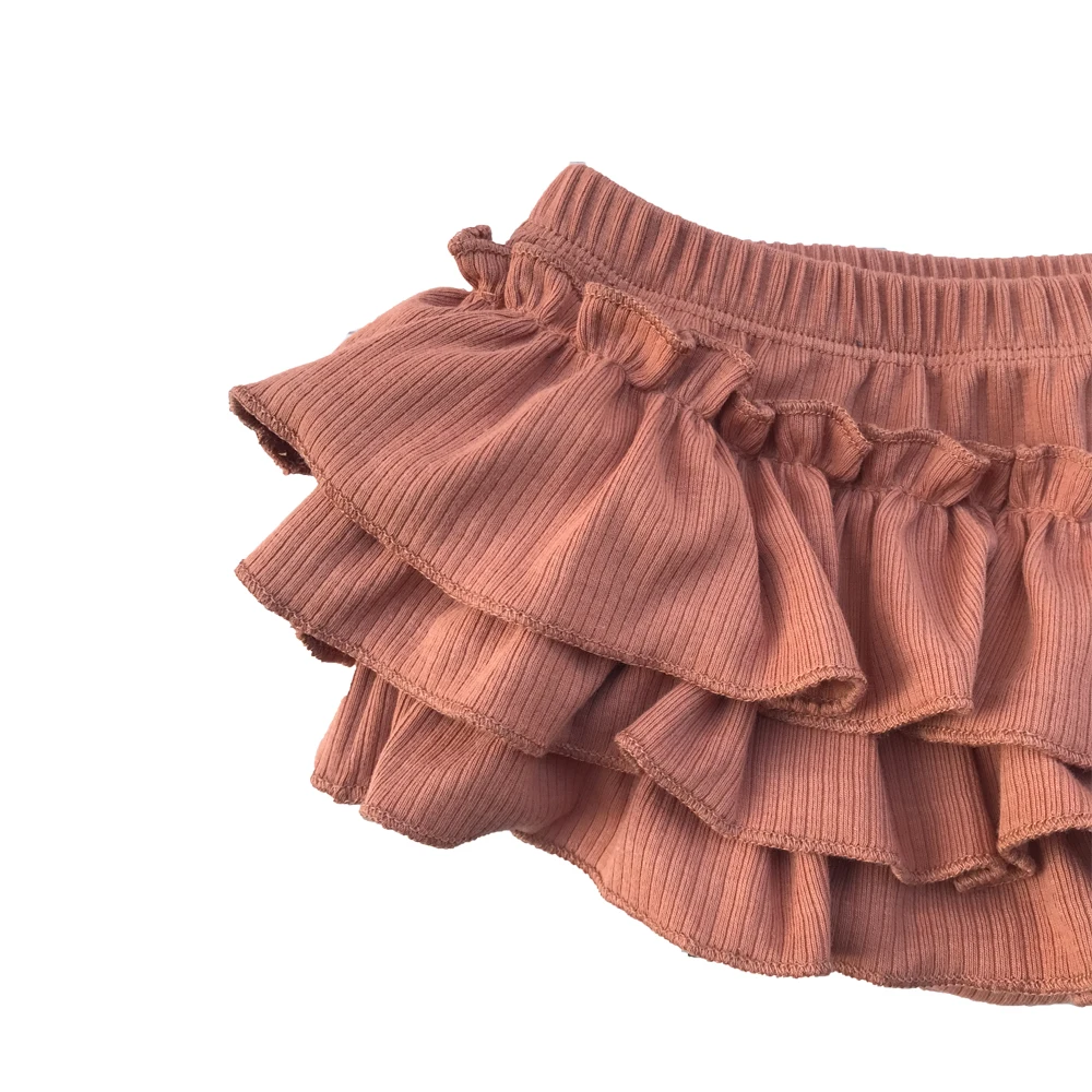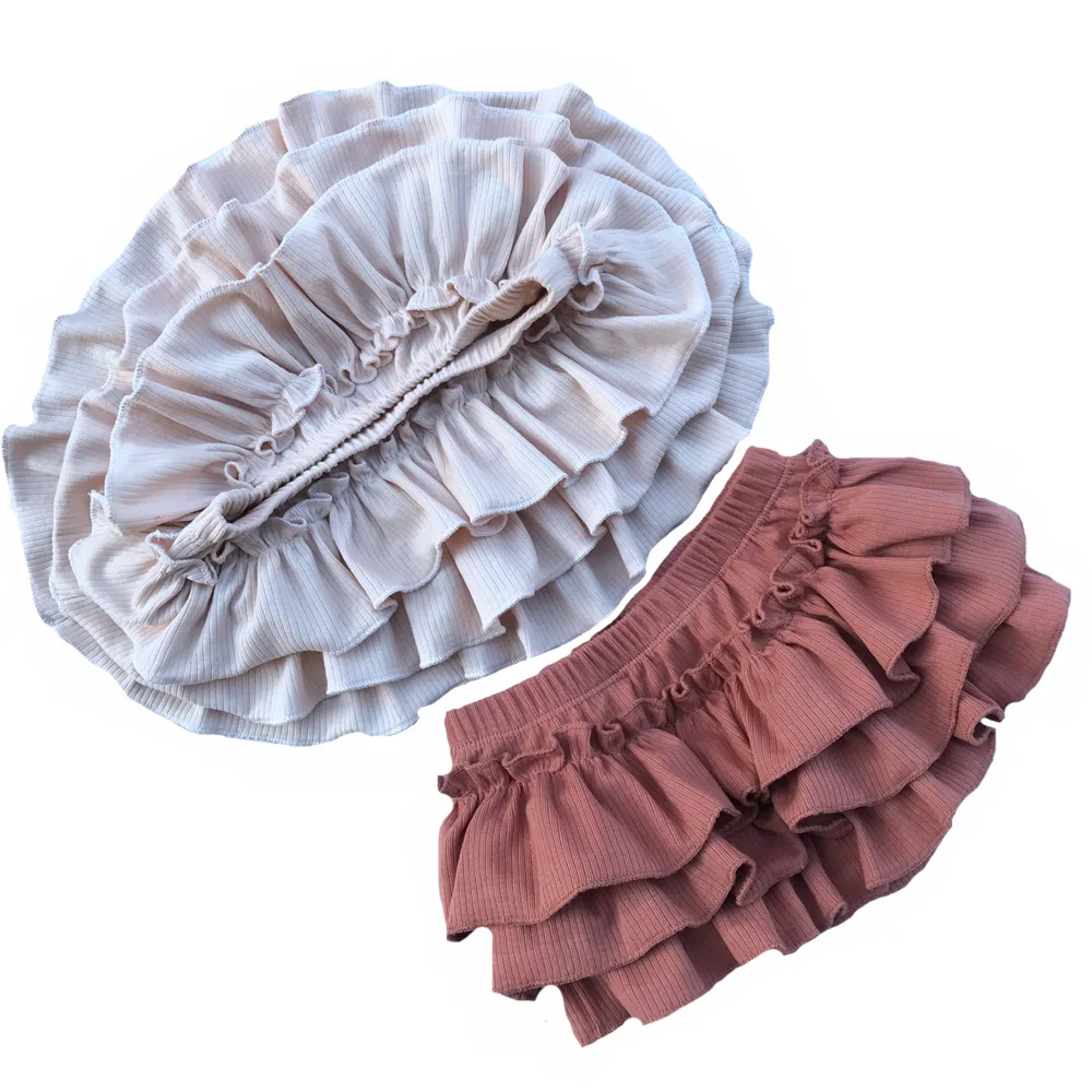 Fashion Summer Baby Short Bloomer Blank Ribbed Cotton Elastic Waist Three Layers Triangle Ruffle Diaper Bloomers