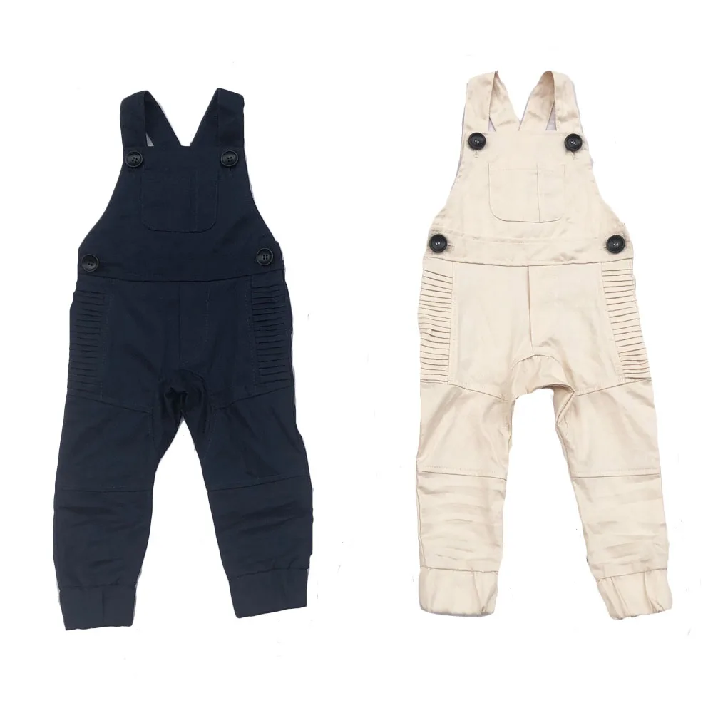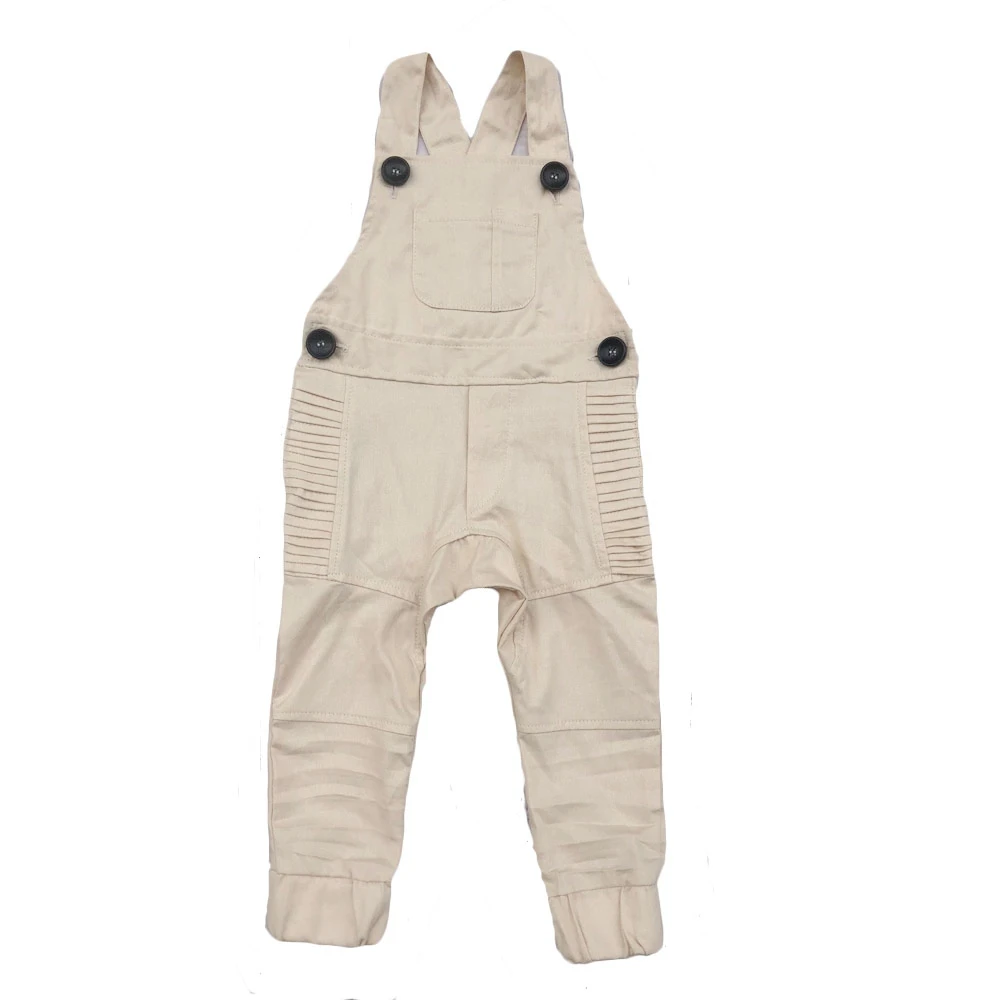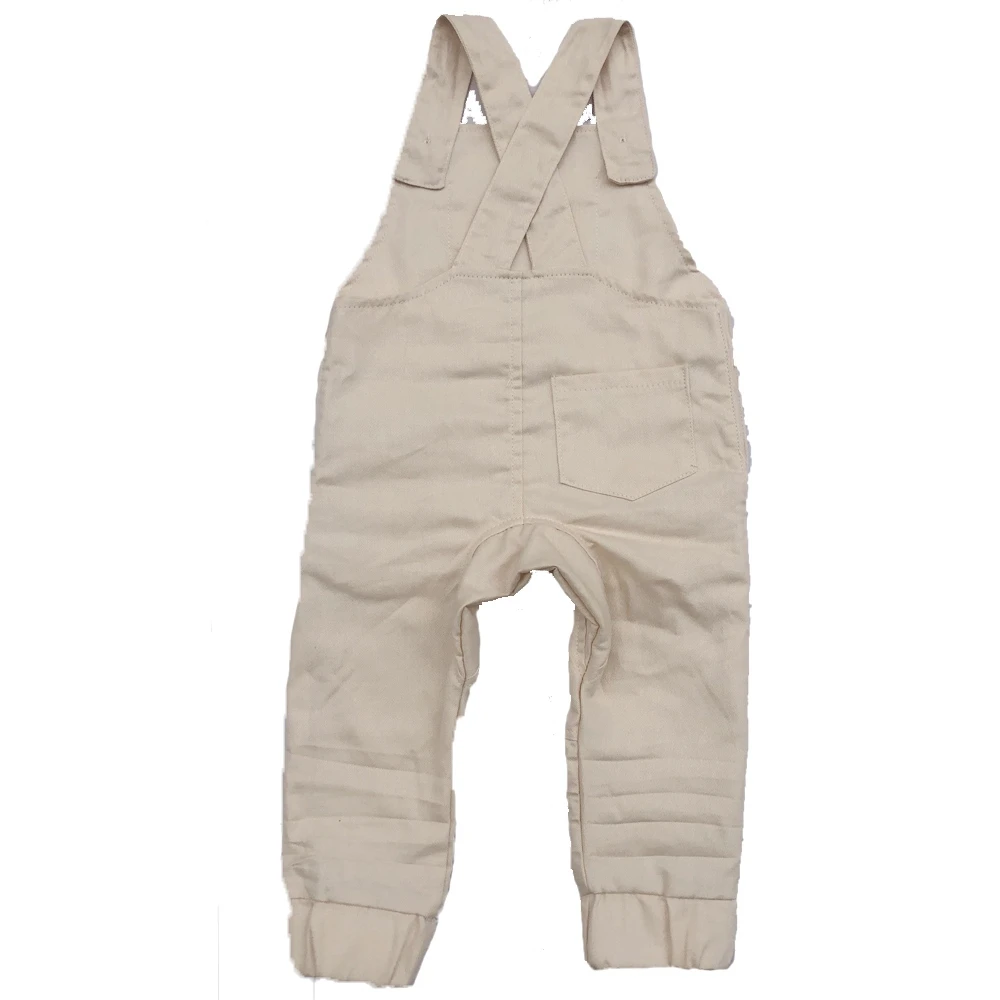 Fashionable Design Boutique Baby Clothes Linen Overall Backless Suspender Kids Romper Pants with Pocket
