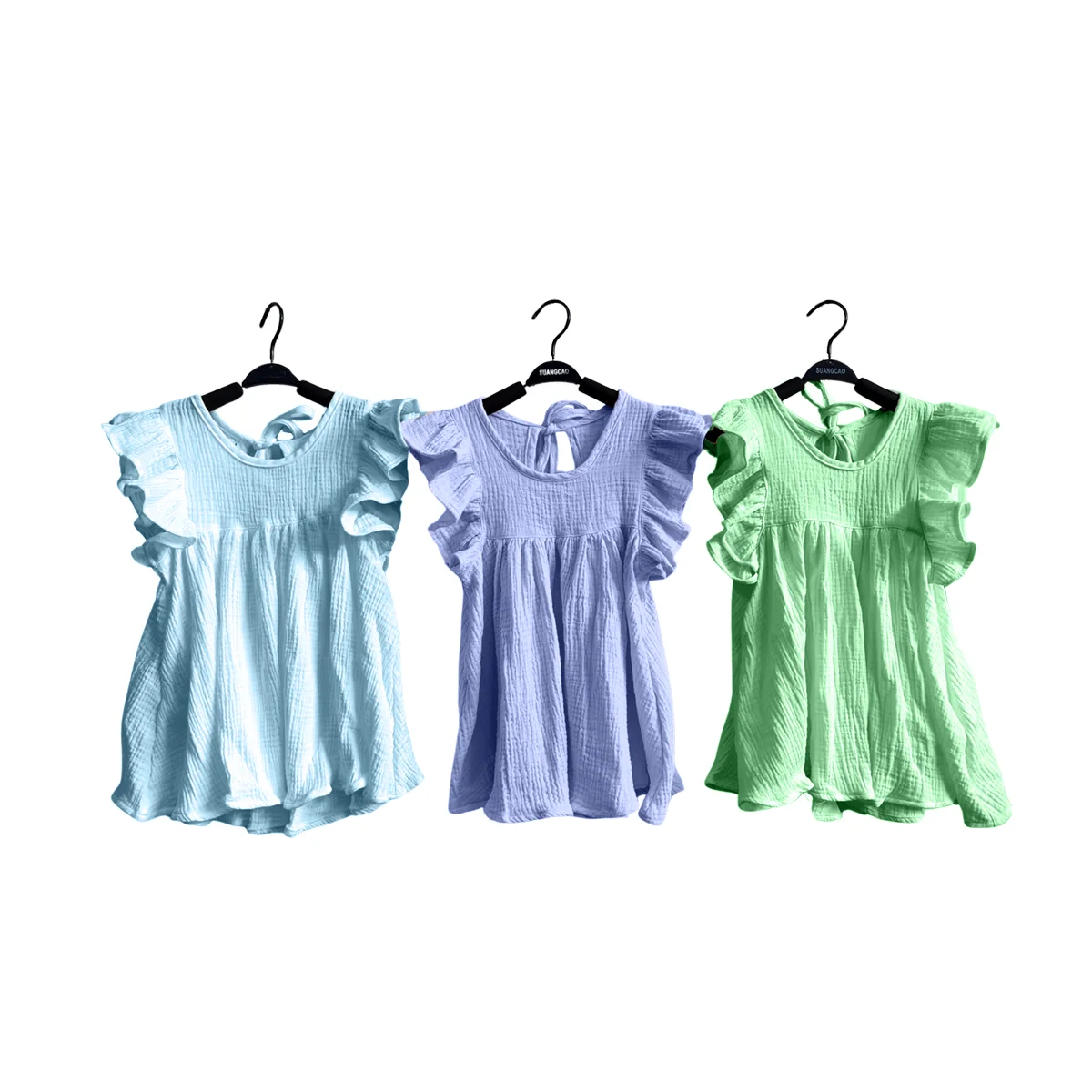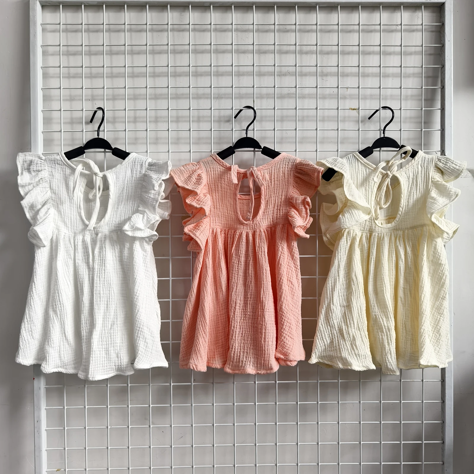 Be the first to review “Flying Sleeve Lotus Leaf Skirt Organic Crepe Yarn Skirt for Girls Casual Solid Pattern Short Sleeve Customizable for 0-8T”