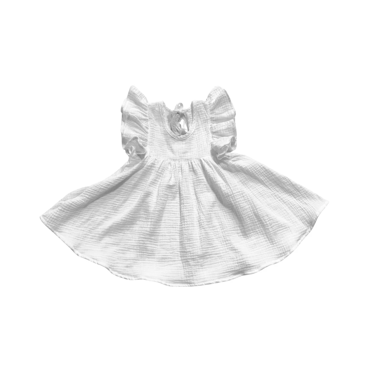 Flying Sleeve Lotus Leaf Skirt Organic Crepe Yarn Skirt for Girls Casual Solid Pattern Short Sleeve Customizable for 0-8T