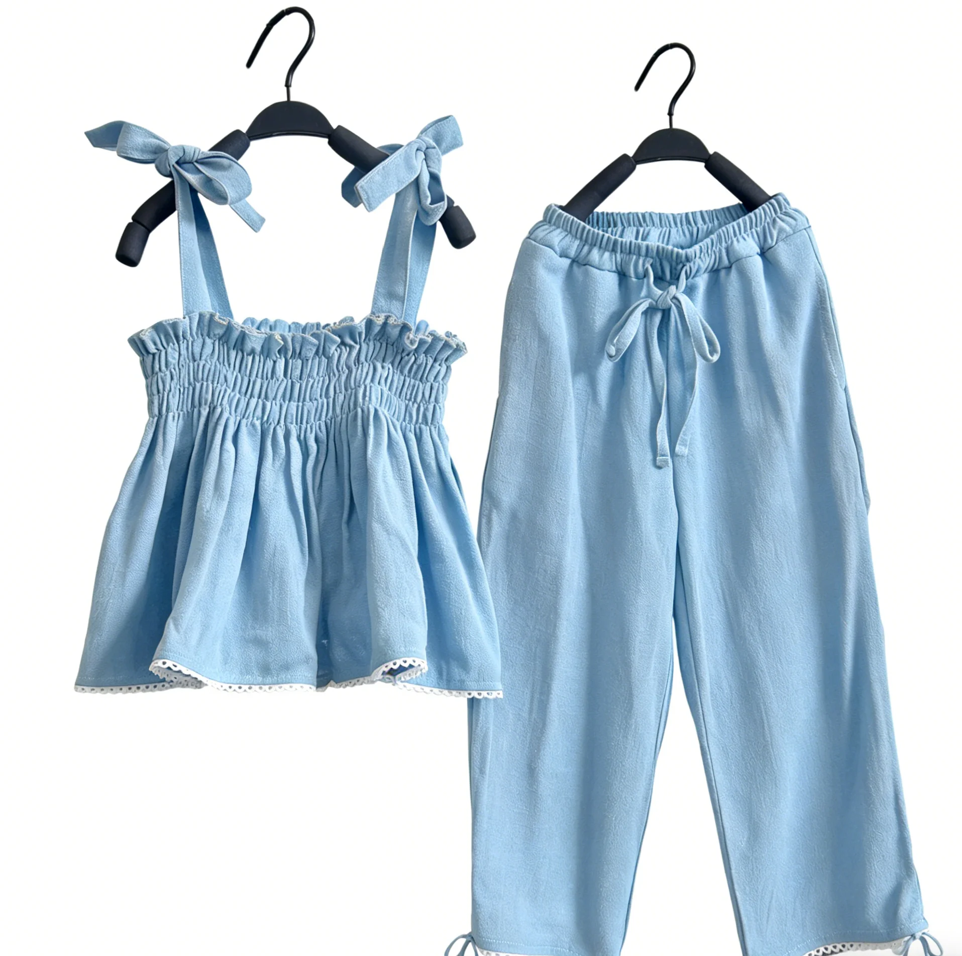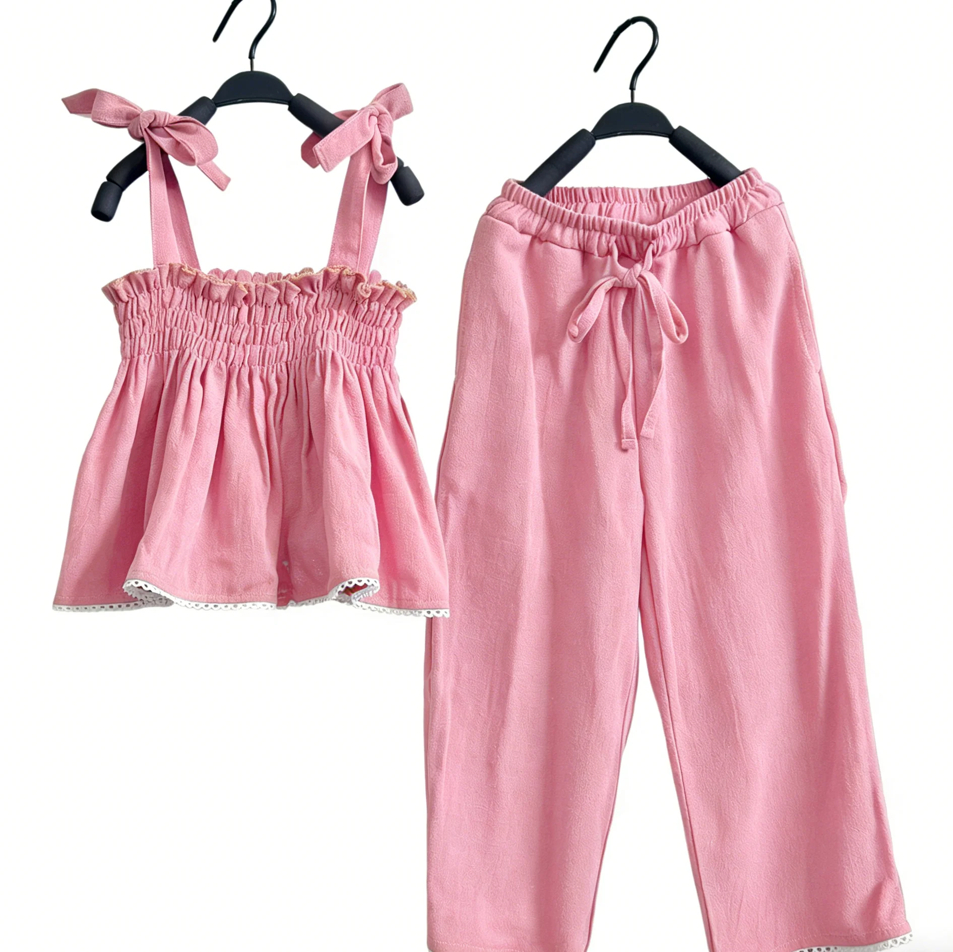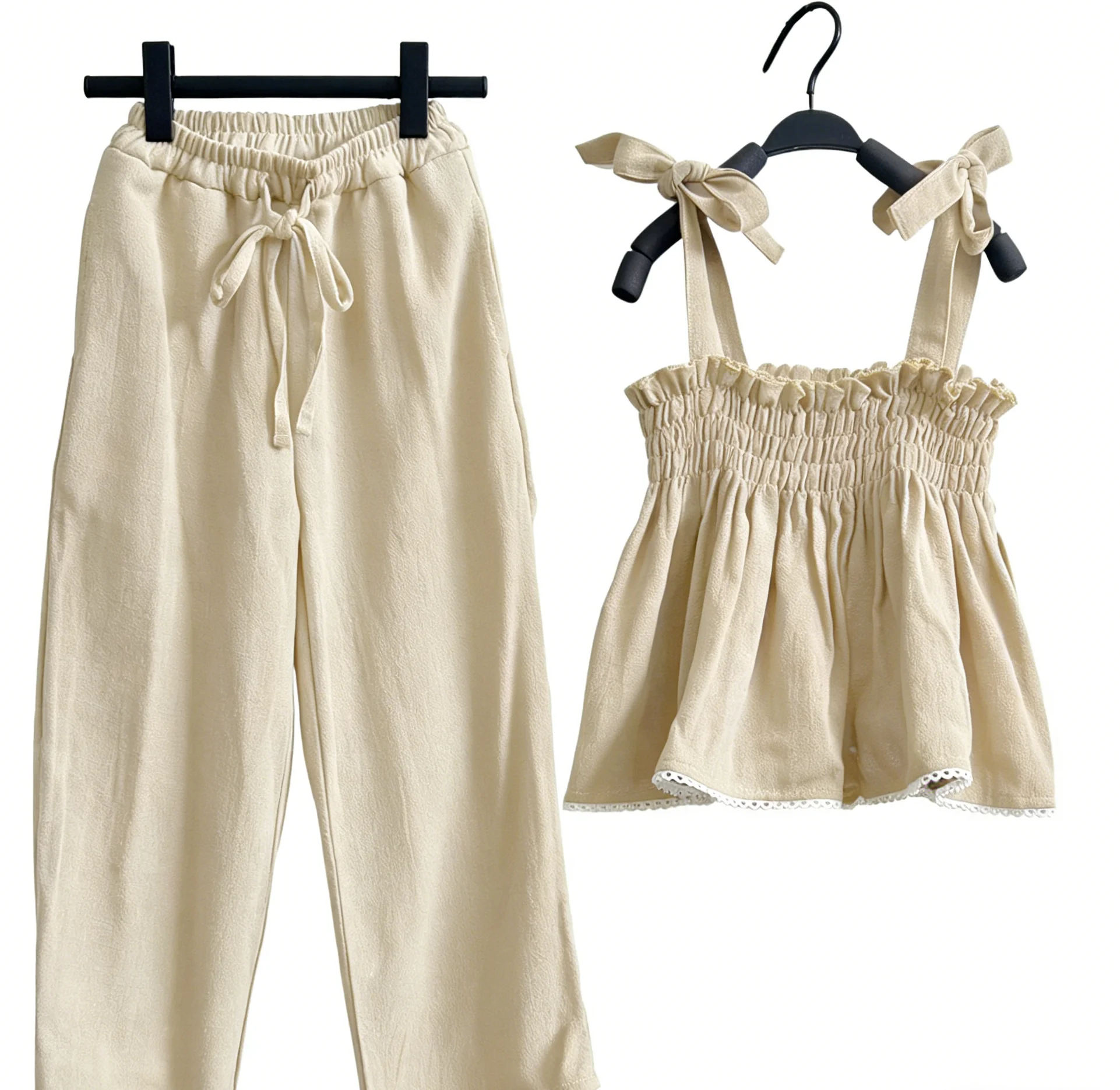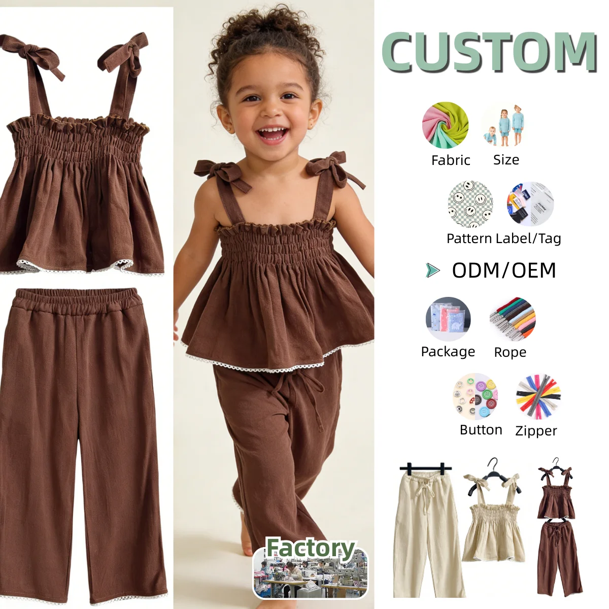 Girl’s Outfit Two-Piece Girls’ Summer Set Baby Wholesale Clothing for Girls 0-8T Kids Clothes Set Cotton and Linen with Lace