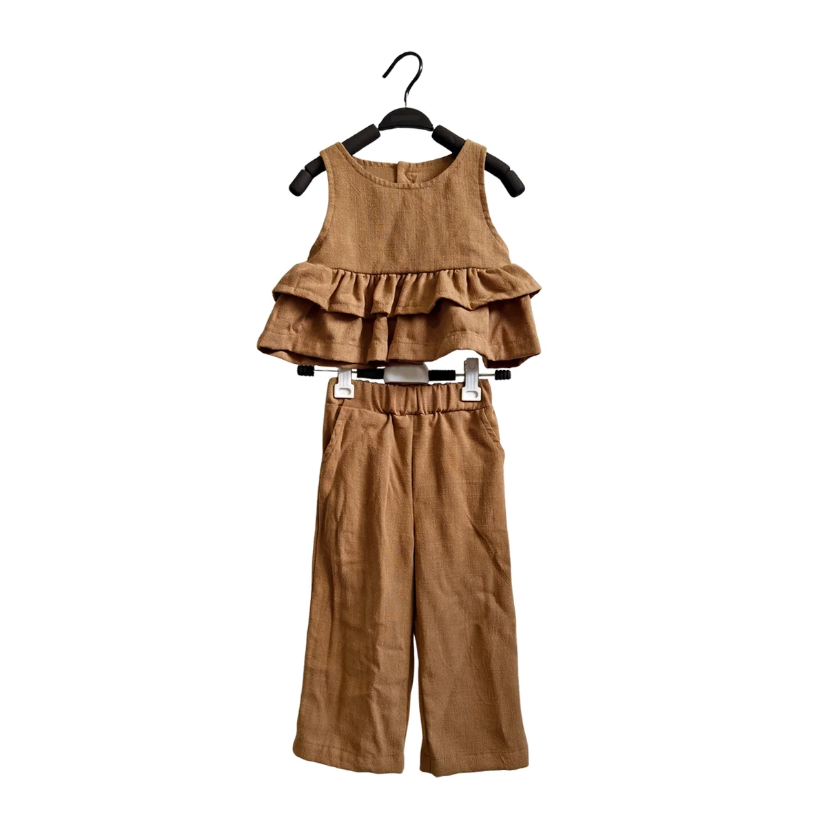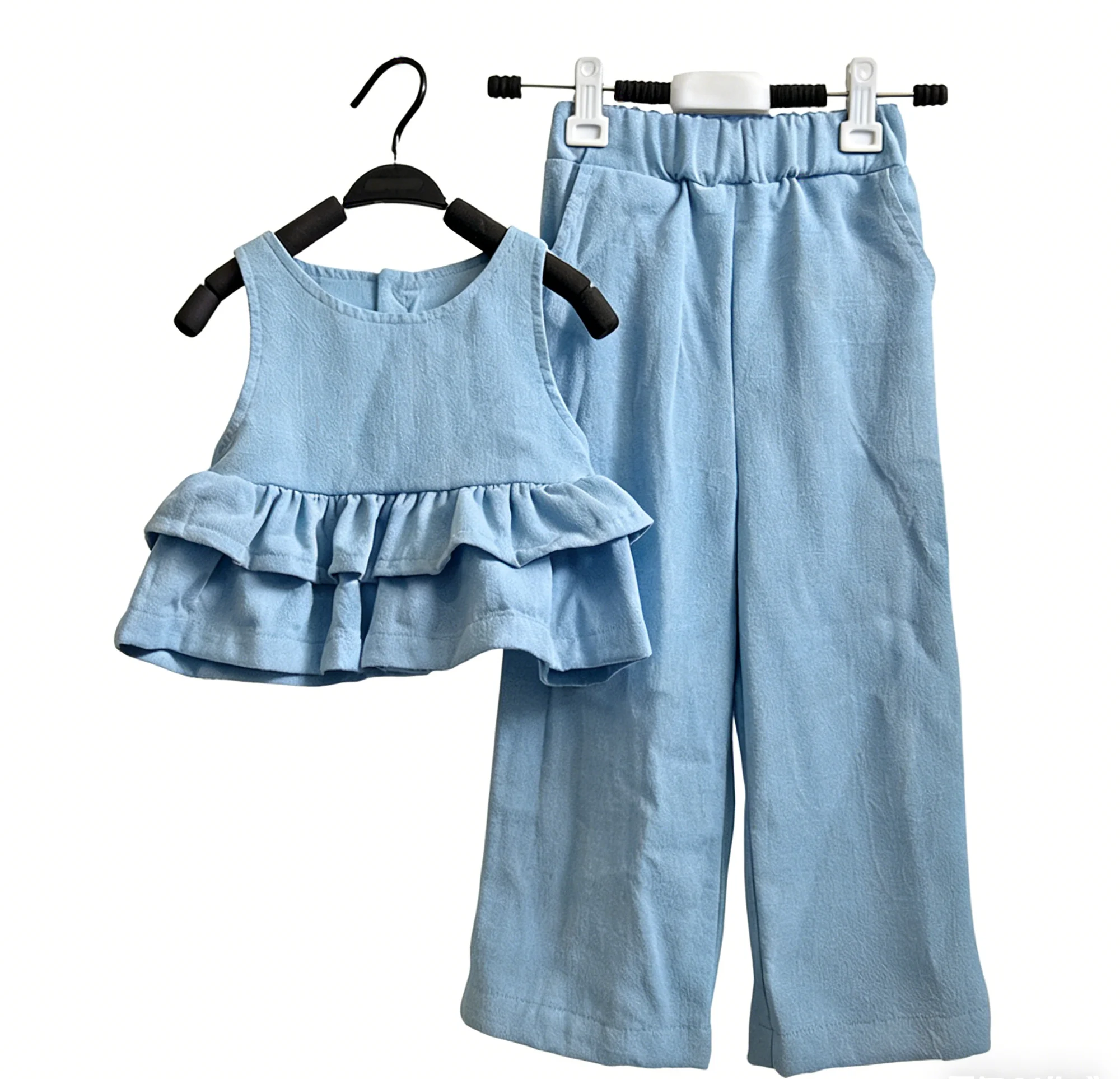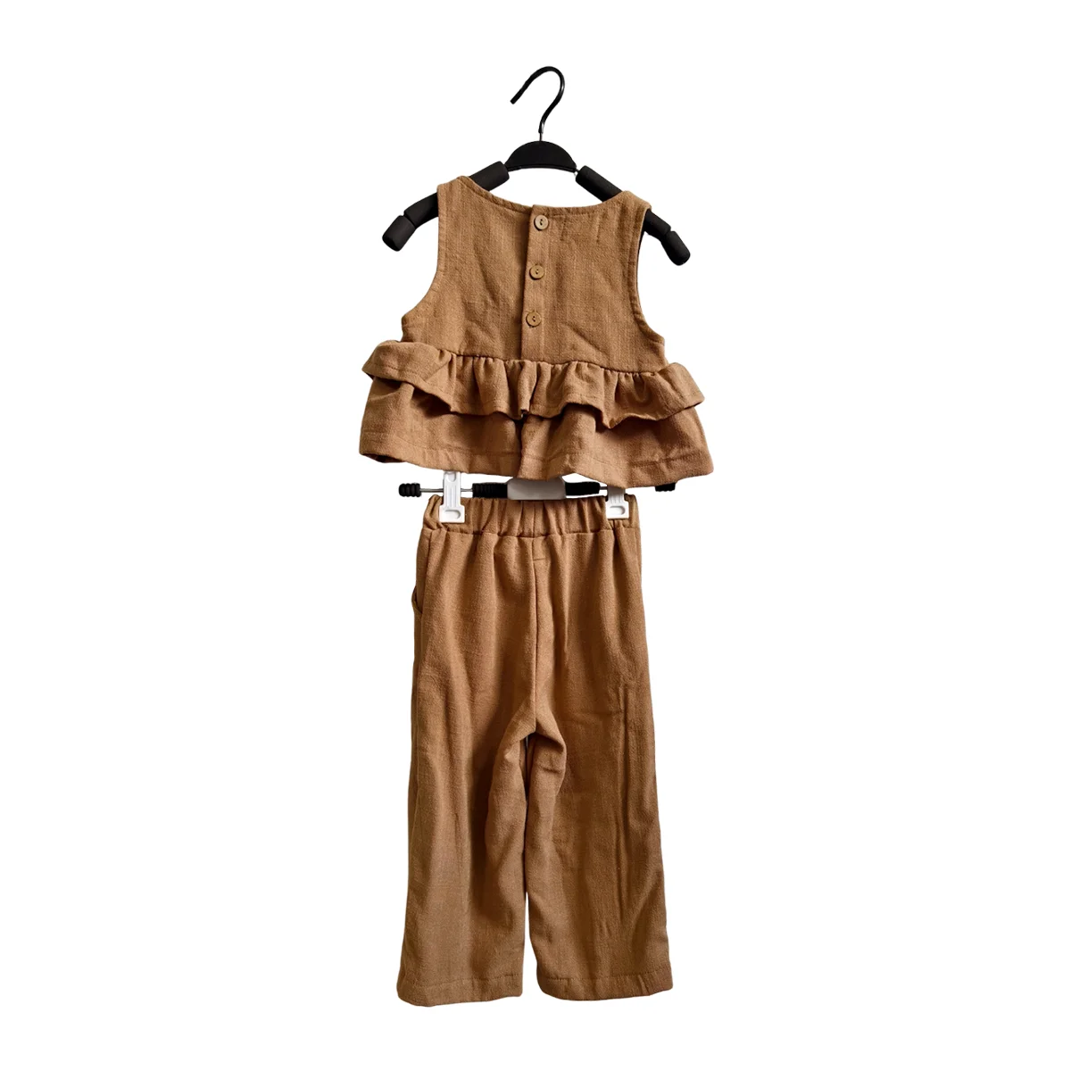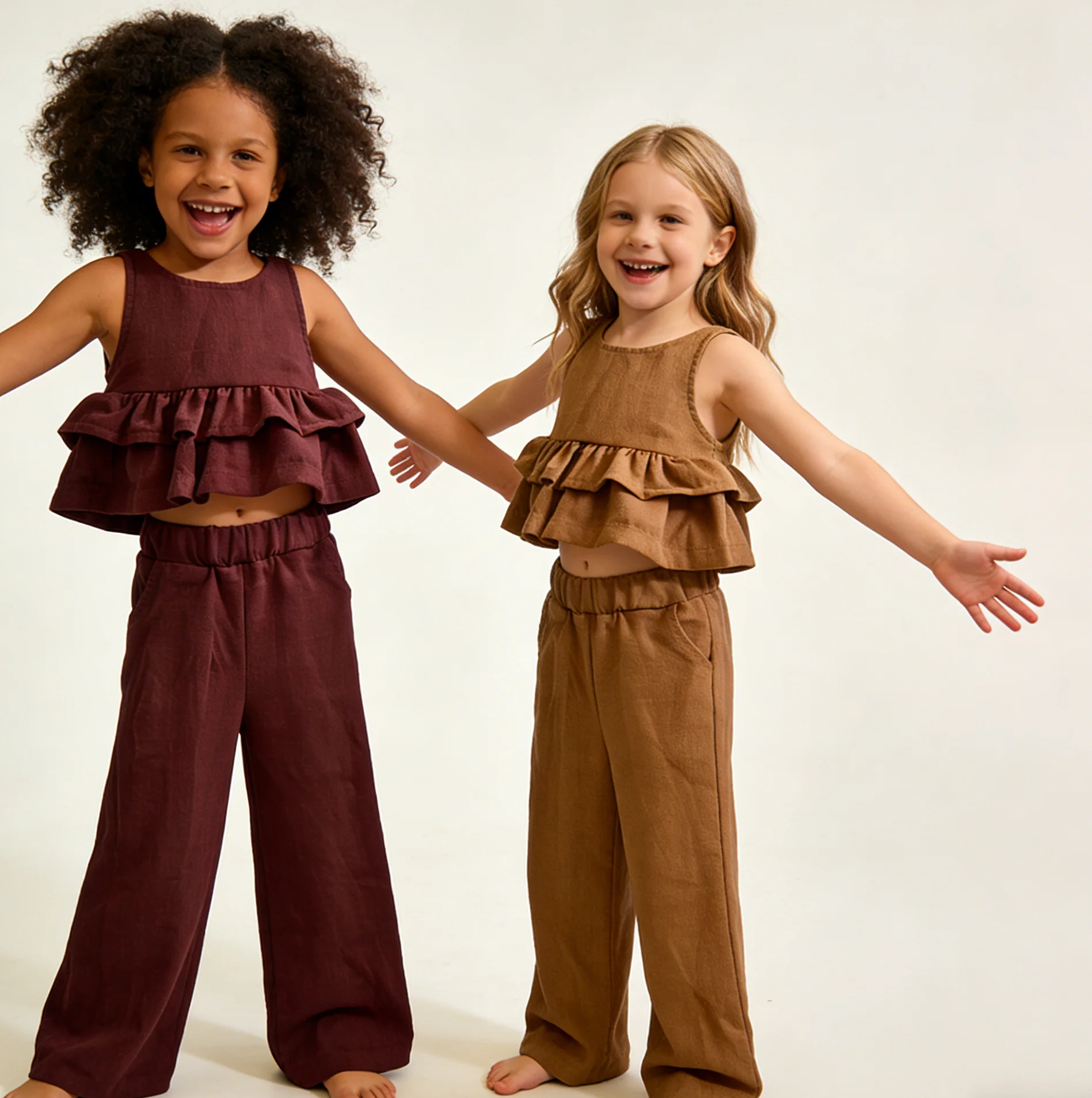 Girl’s Outfit Two-Piece Kids Clothes Set Girls’ Cotton and Linen Summer Suit Clothing for Girls 0-8T Breathable Material