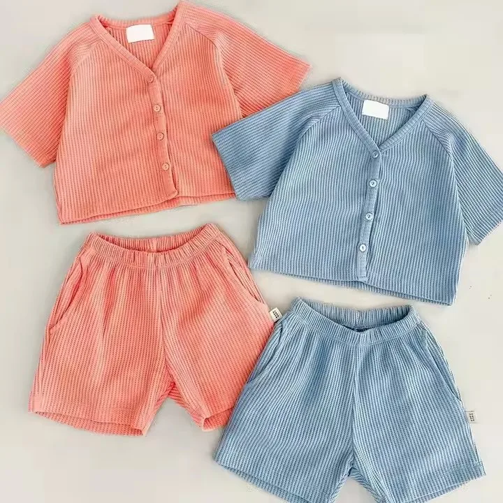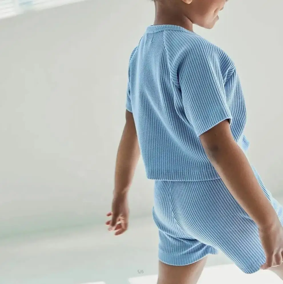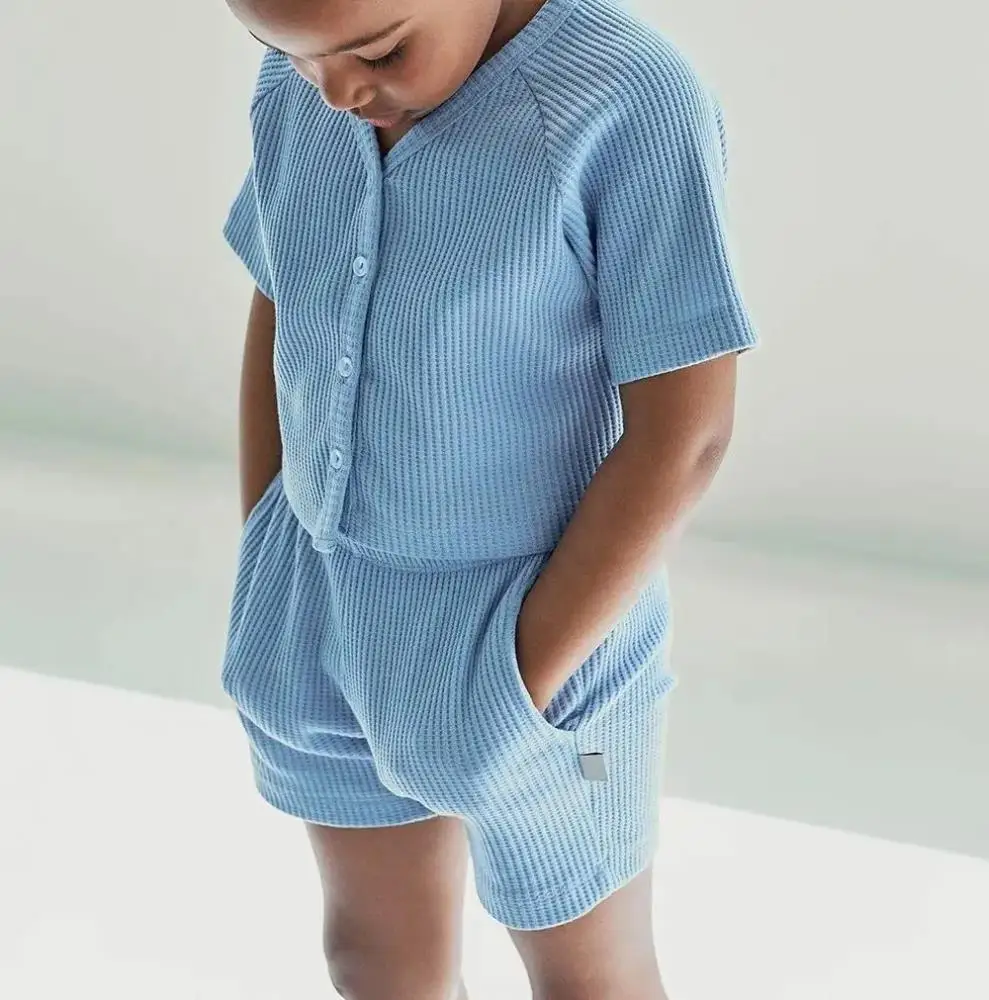 High Quality Customized Design Waffle Boys and Girls Shorts T Shirt Toddler Clothing Sets