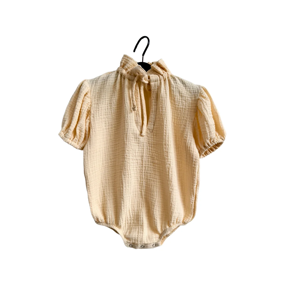High Quality Toddler Organic Crepe Baby Shirt Rompers Custom Print Button Kids Boys Short Sleeve Romper