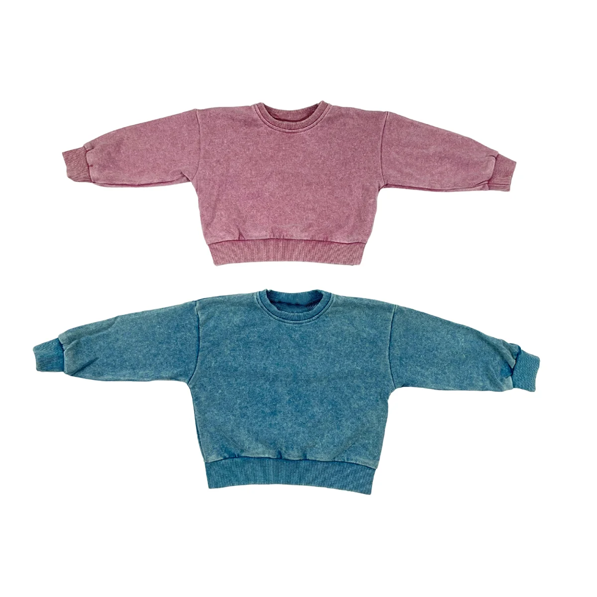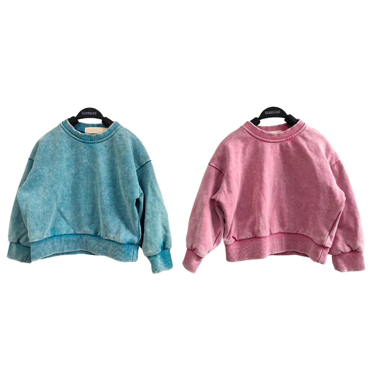 Hot Sale Custom Color Acid Wash Unisex Toddler Kids Sweatershirt Long Sleeves French Terry Cotton T-shirt