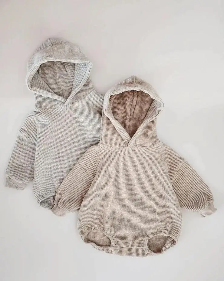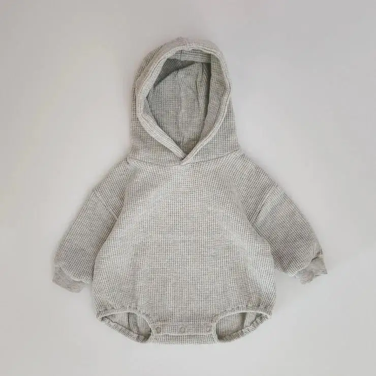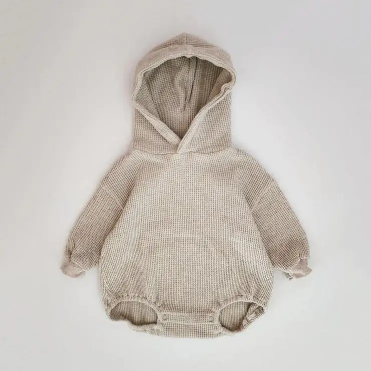 Hot Sale Unisex Baby Clothes Soft Waffle Solid Baby Boys and Girls Fall Toddler Oversized Bubble Sweatershirt Pullover Hoodies