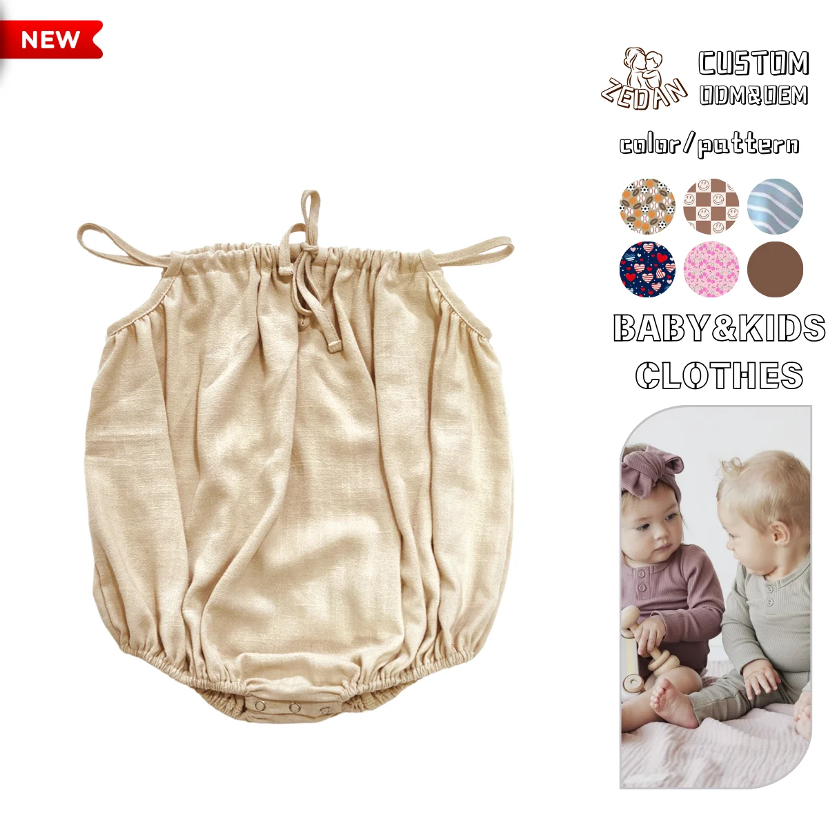 Hot Summer Linen Cotton Baby Romper with Cute Sleeveless Design Solid Color Suspenders Button Closure Size 3T-for Baby Girls