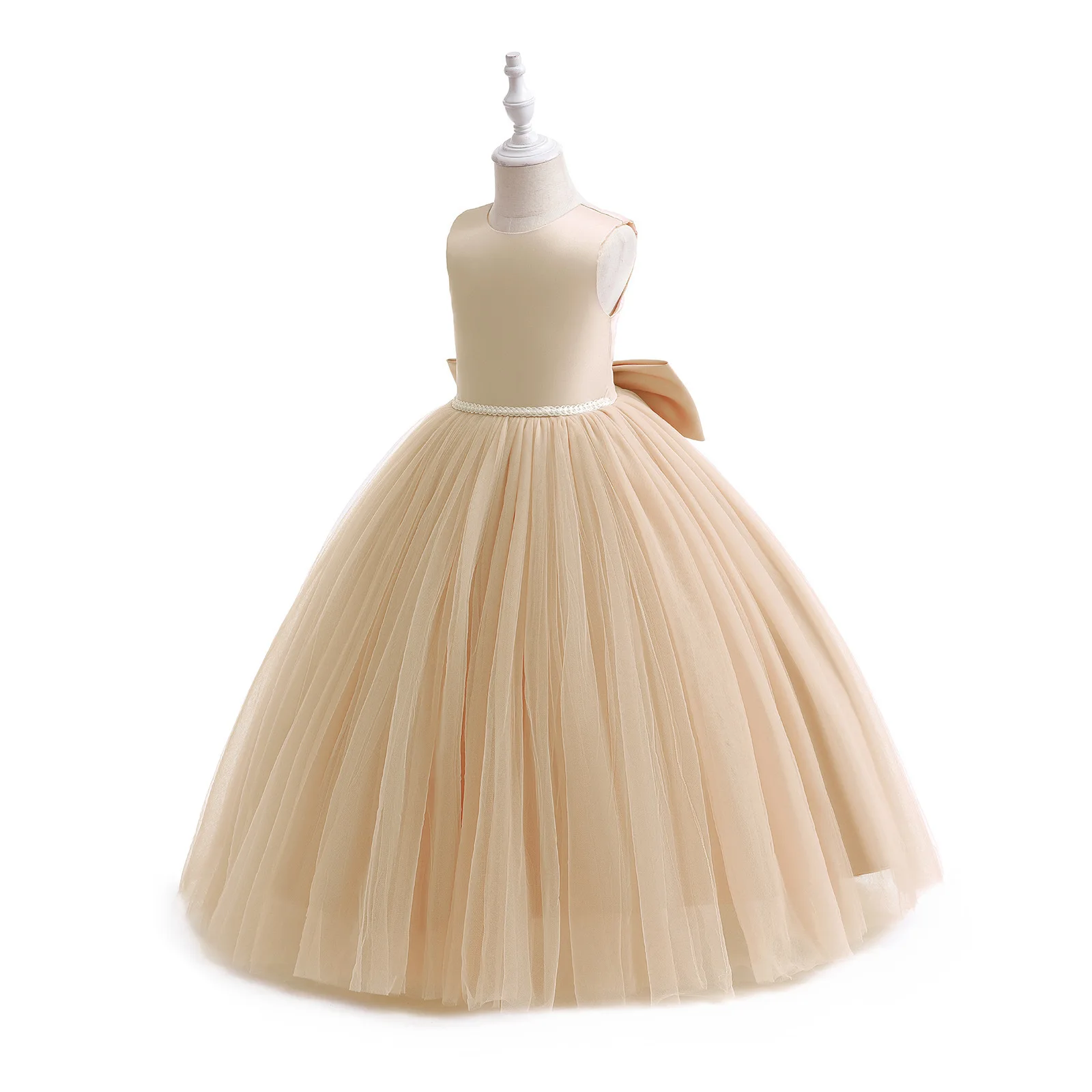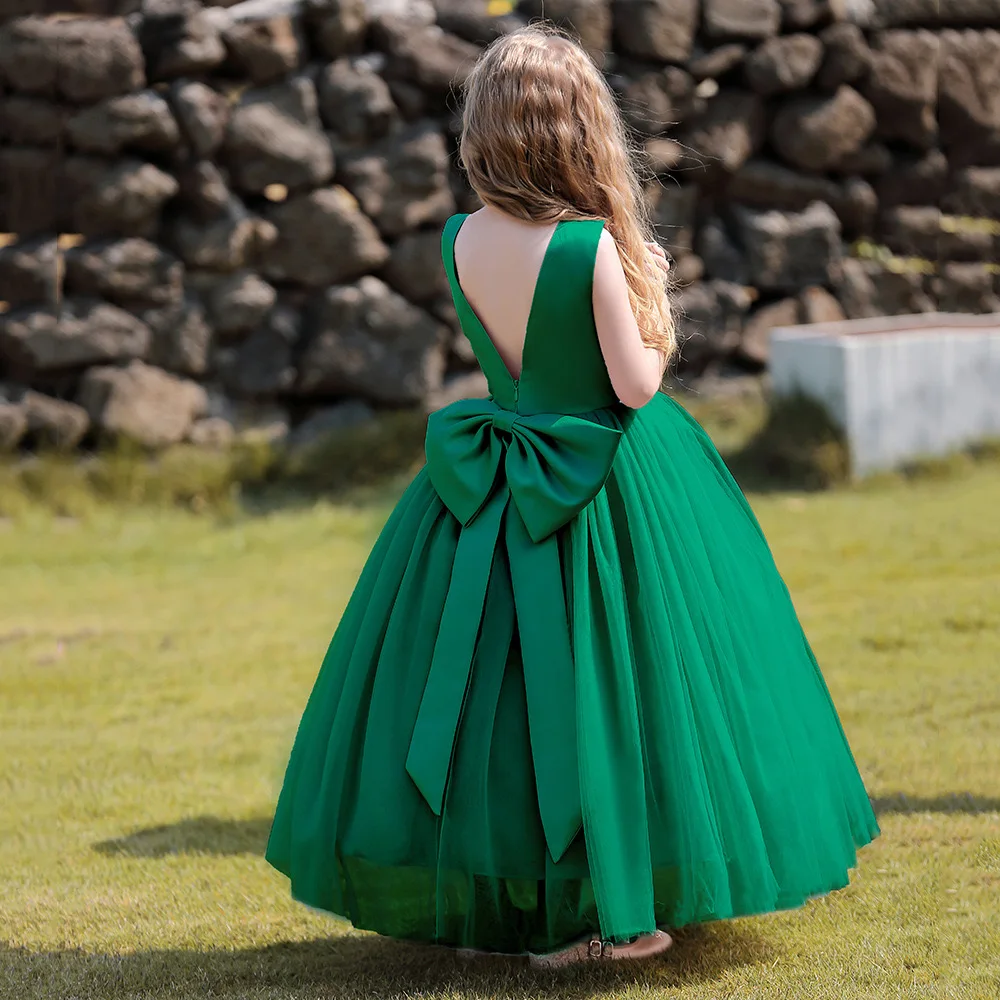 In Stock Cotton Sleeveless Solid Color Princess Tutu Skirts Sleeveless Flower Girl Dress Floor Length Tulle Princess Dress
