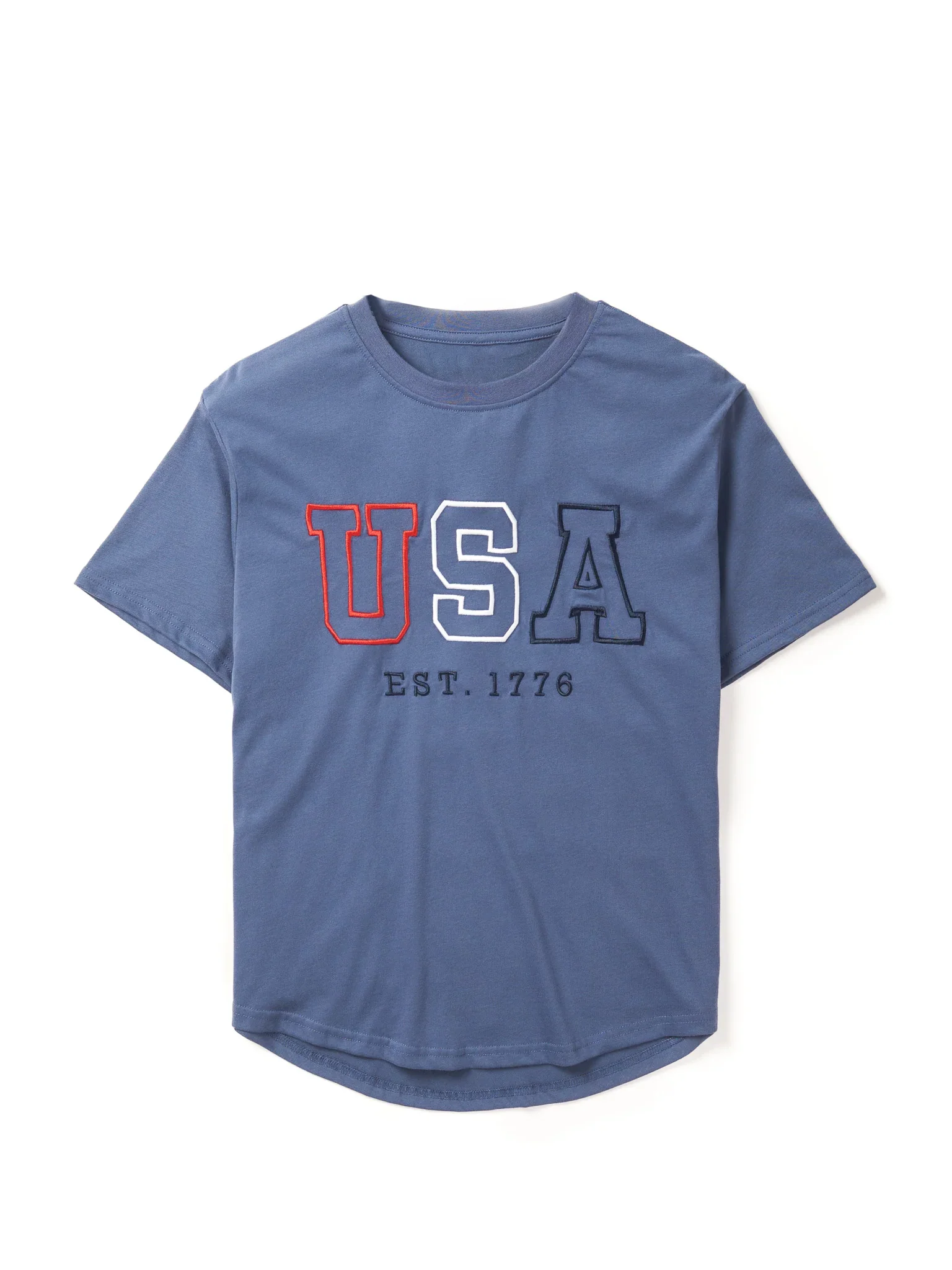 Independence Day Summer Mommy and Me Curved Bottom Embroidered Pattern Knitted Cotton Navy T-shirt