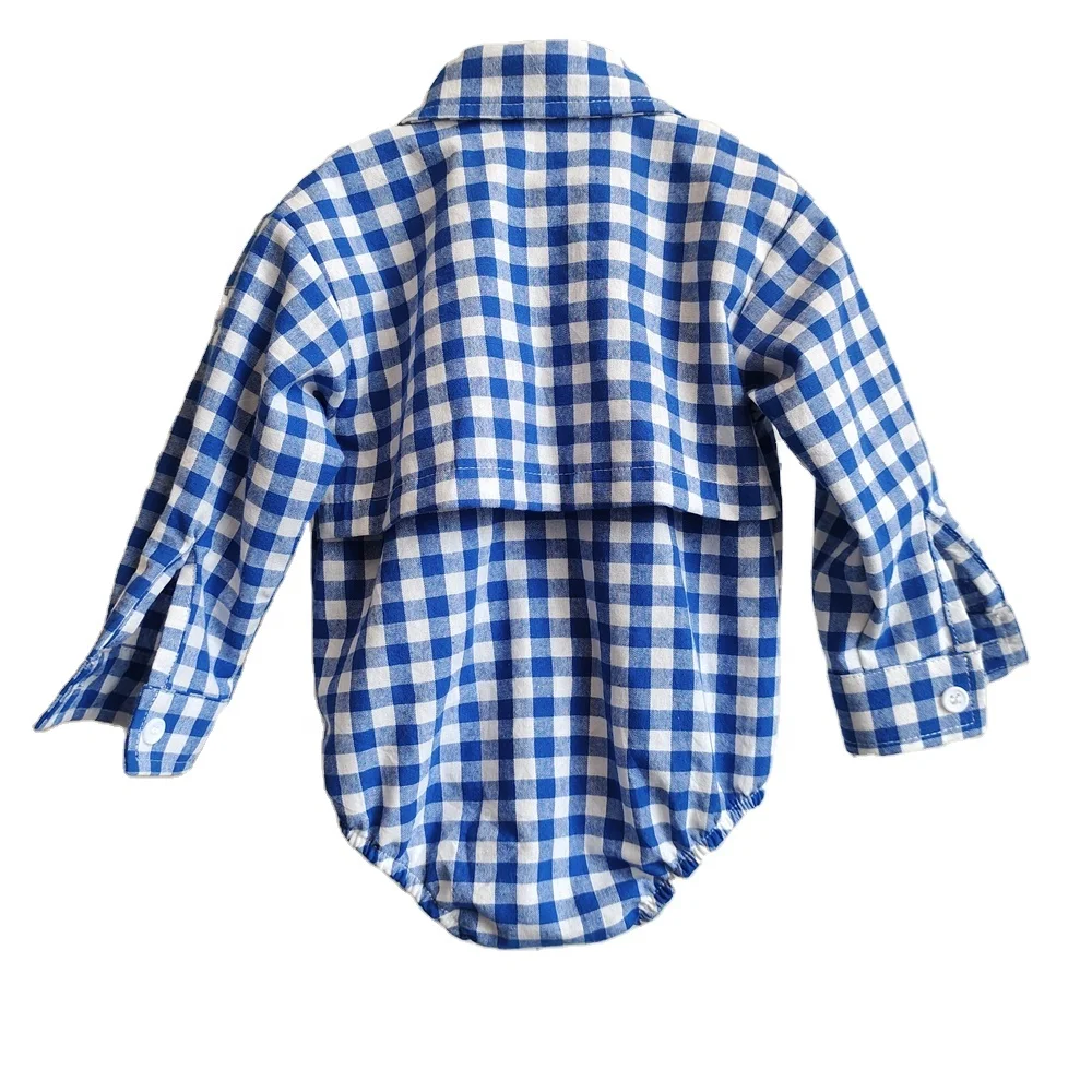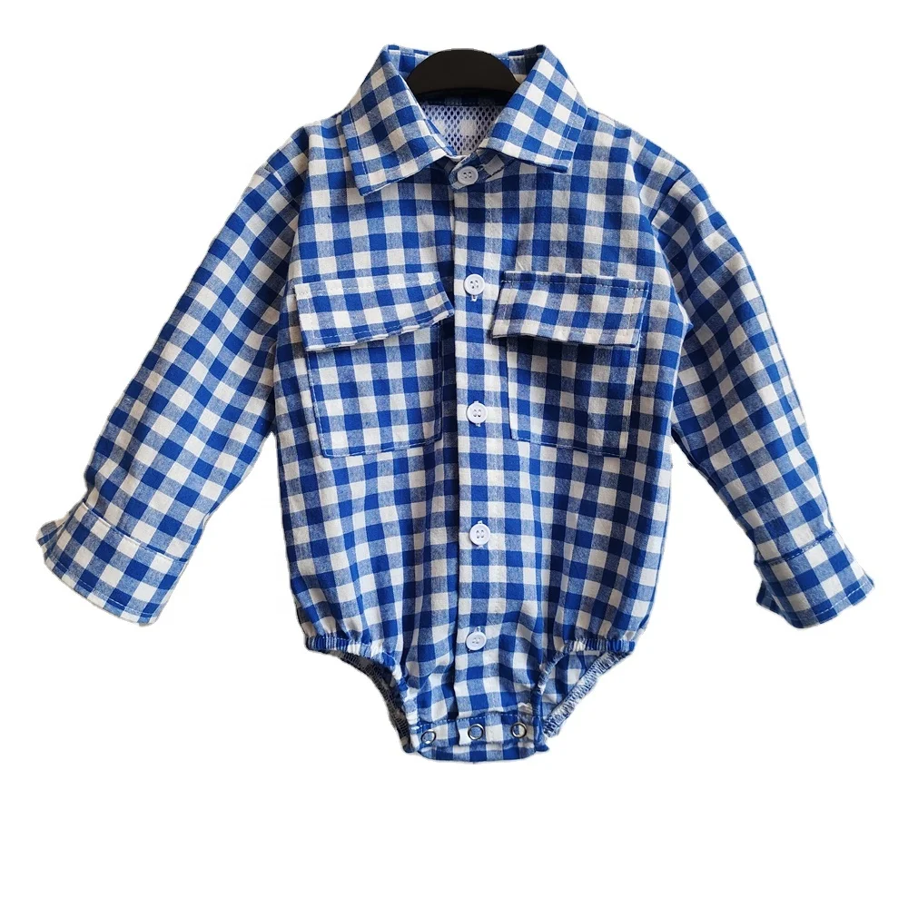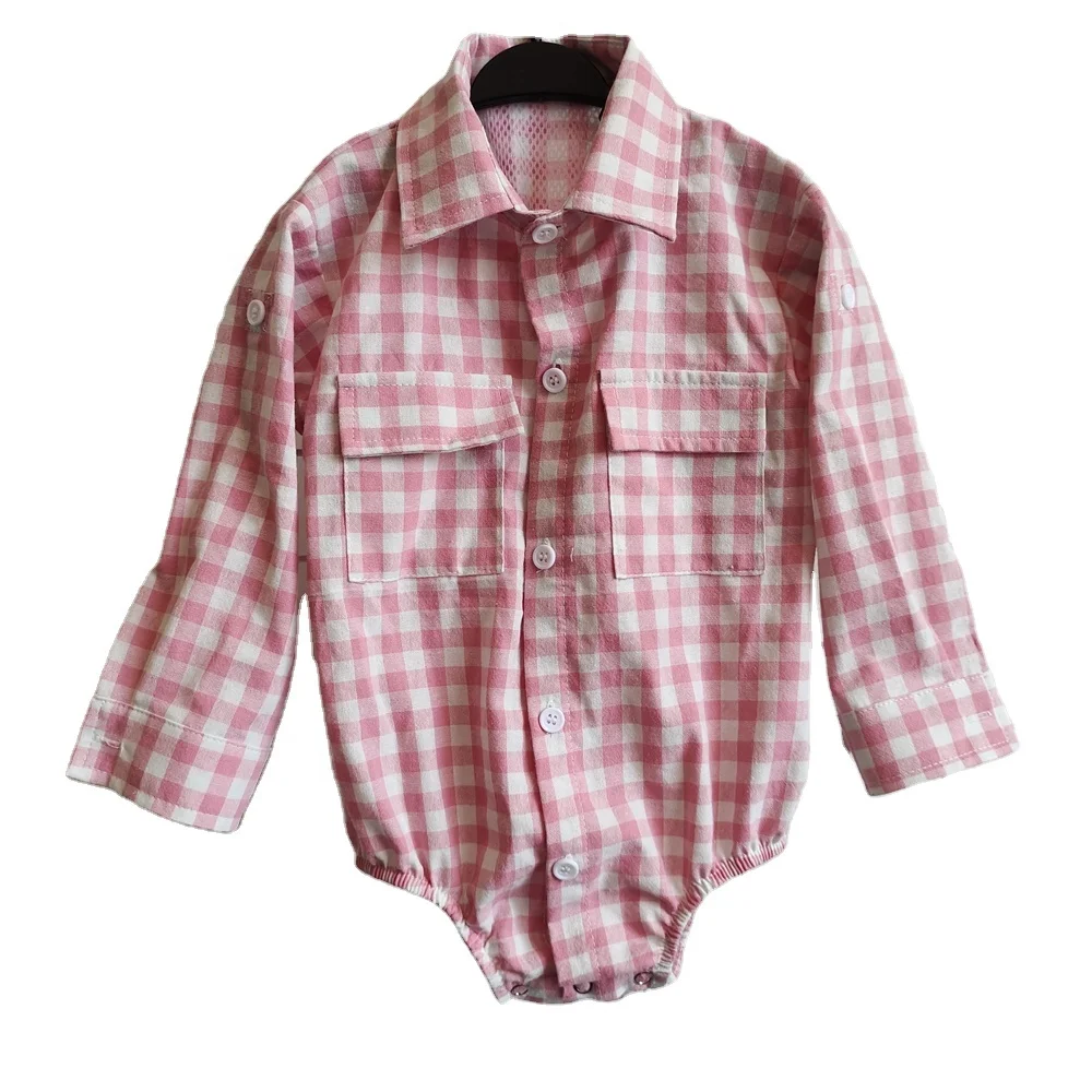 Infant Checked Fishing Shirt One Piece Unisex Custom Long Shirt Summer Plaid Baby Fishing Romper