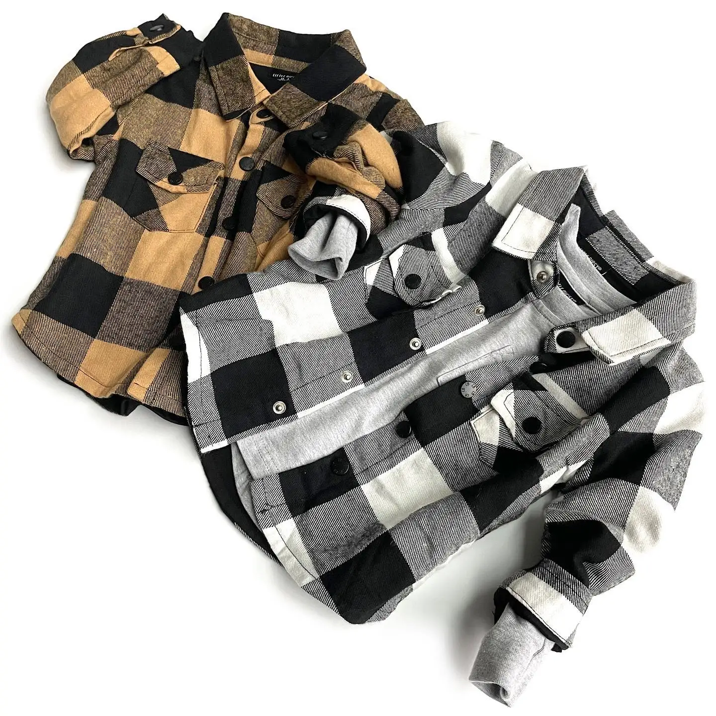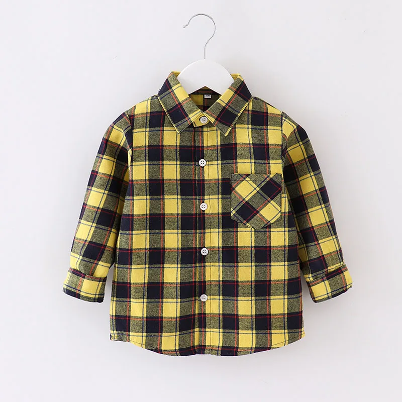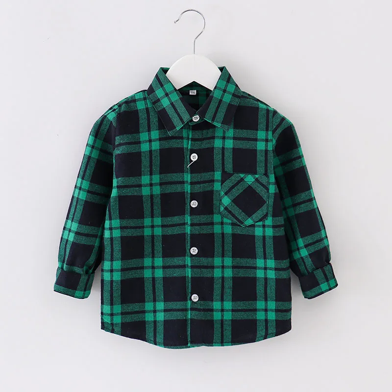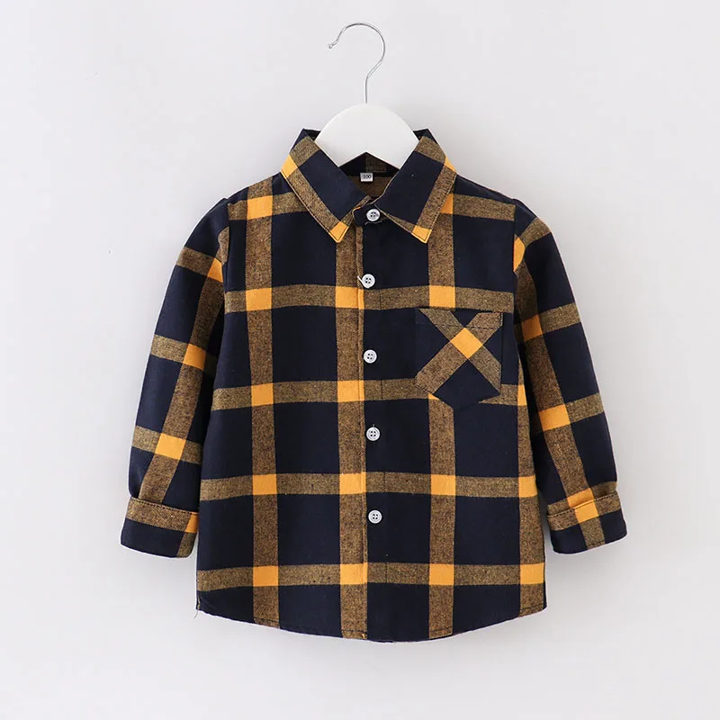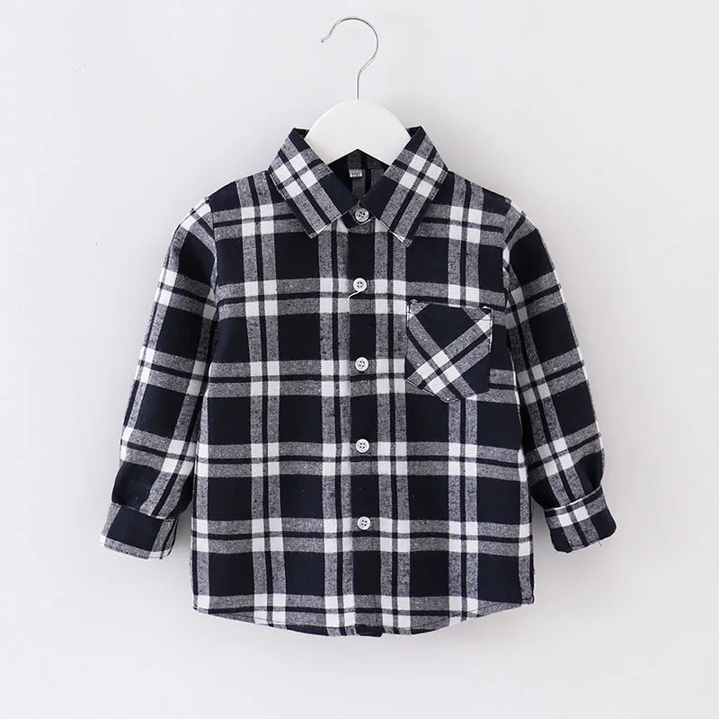 Infant & Toddler Boys Flannel Plaid Cotton Shirt Autumn Long Sleeve Kids Check Buttons up Shirts with Pockets