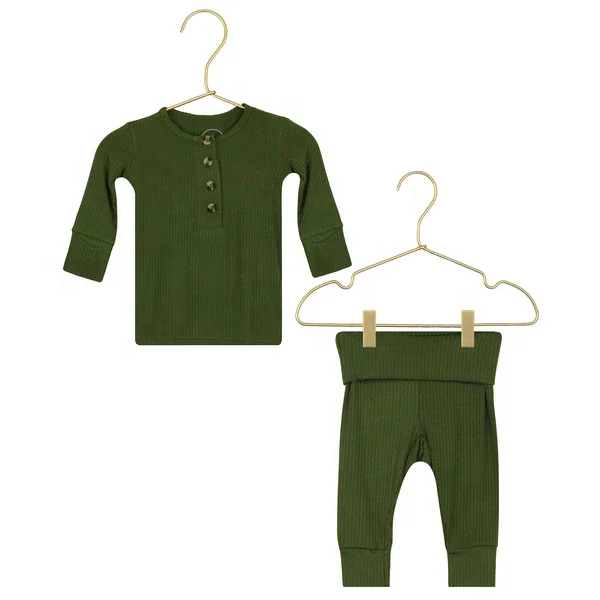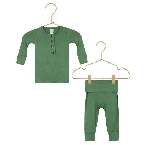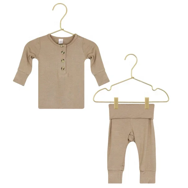 Infant Underwear Suit Kids Top + Bottom Knit Cotton Autumn Winter Set Boys Girls High Waist Sleepwear with Button Clothes